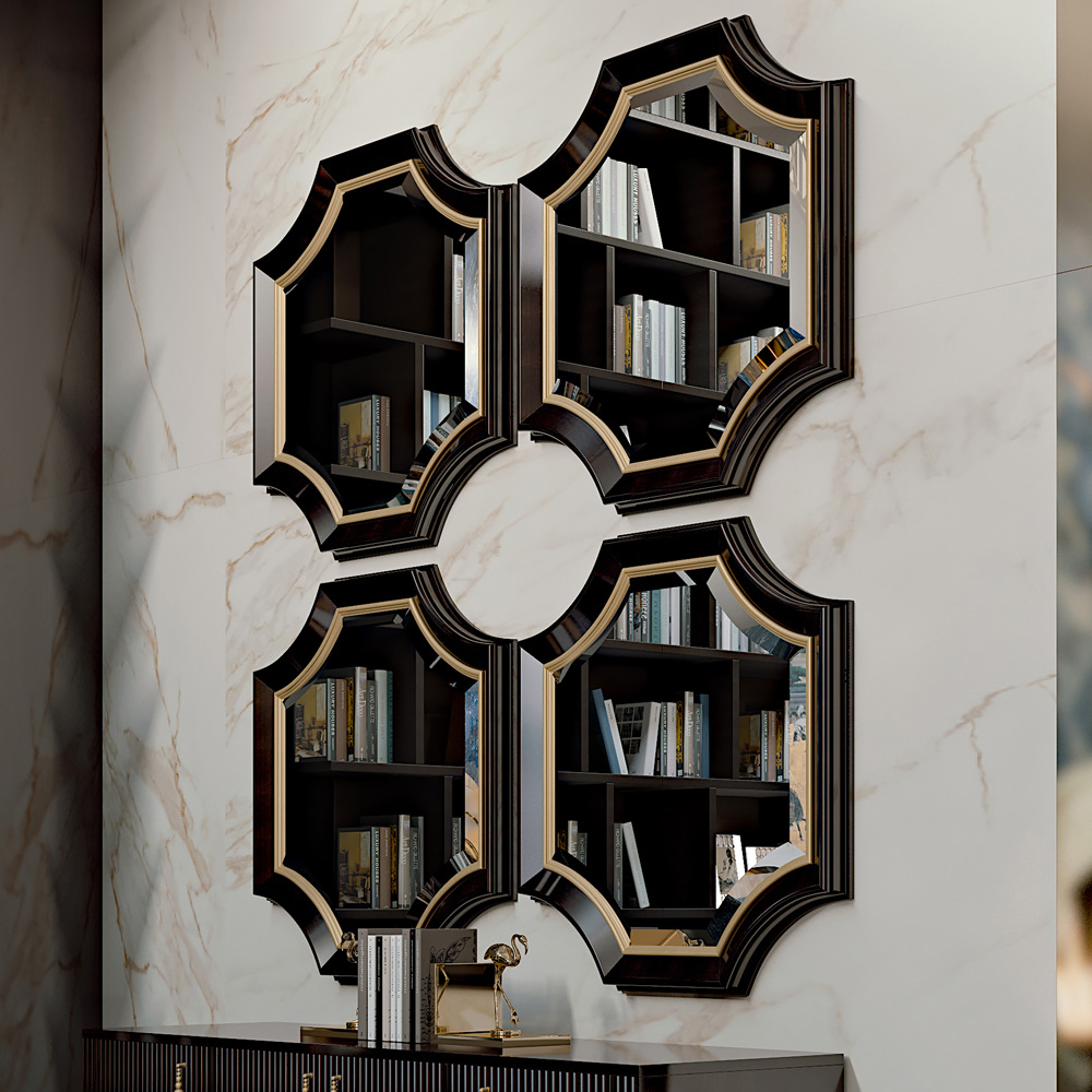 The Art Deco Inspired High Gloss Ebony Mirror, is an exquisite piece. Art Deco inspired, its unique design is suited to both classic and contemporary interiors. A striking statement piece, created with superb attention to detail. Shown here in a set of four creating a beautiful focal feature.