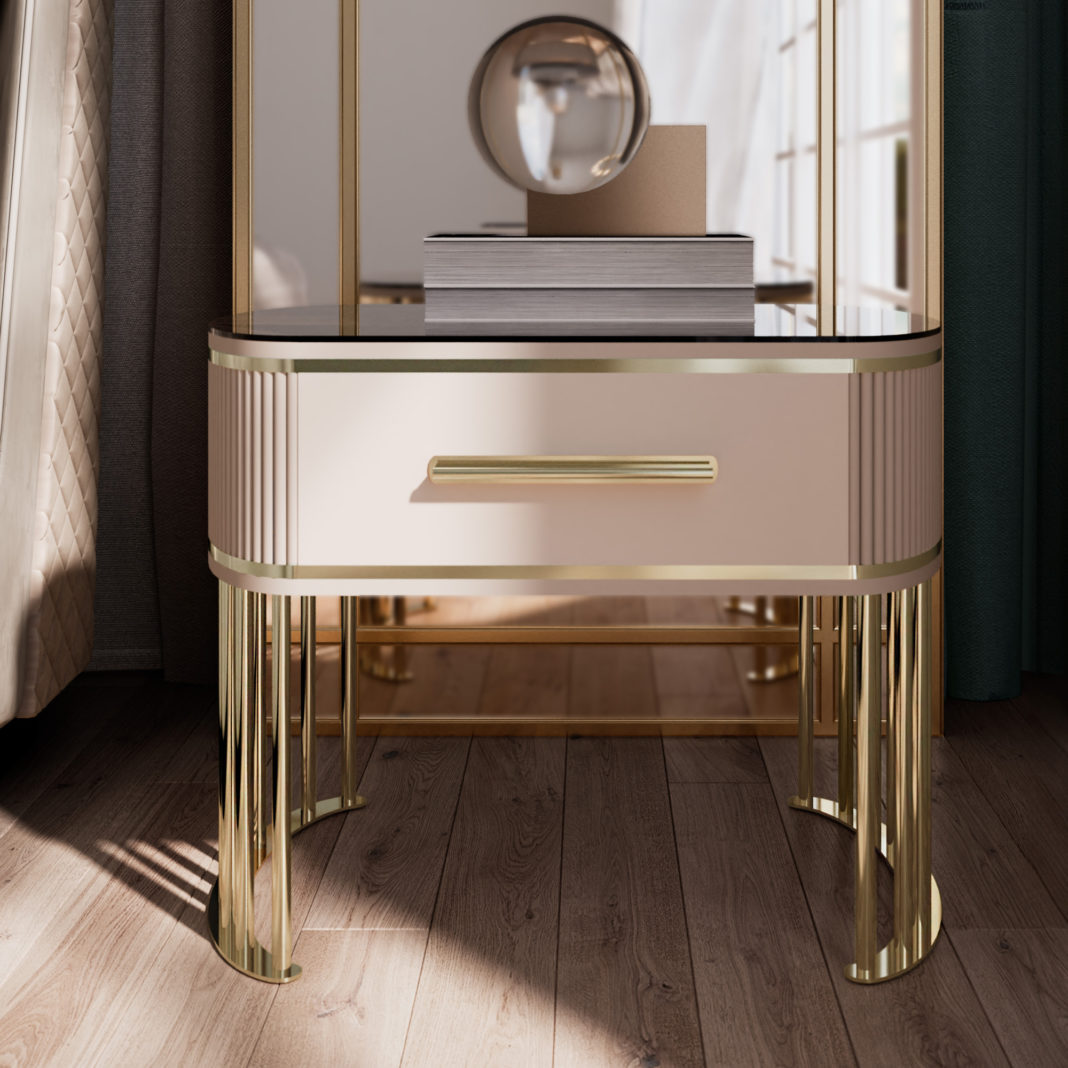 The Art Deco Style Ribbed Bedside Table is simply exquisite, and timelessly chic. This remarkable piece makes a stunning luxurious statement for any bedroom setting. Impeccably executed by master craftsmen. A combination of bold lines, Art Deco tones and exquisite materials.