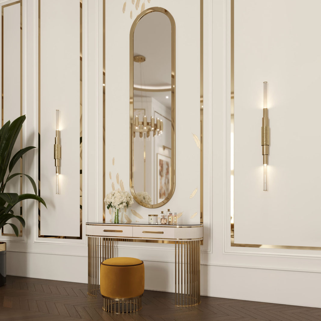 Paired here with the Luxury Pouffe With Brass Base, with a sophisticated high-end look. A brass structure with a fabulous defining curve that catches the eye and draws you in. Shown here in a polished 24 carat gold finish supporting the most beautiful on trend velvet upholstery with contrasting velvet piping detail. Giving this pouffe a unique style, and creating a truly fabulous focus. Height 44 cm x diameter 38 cm.