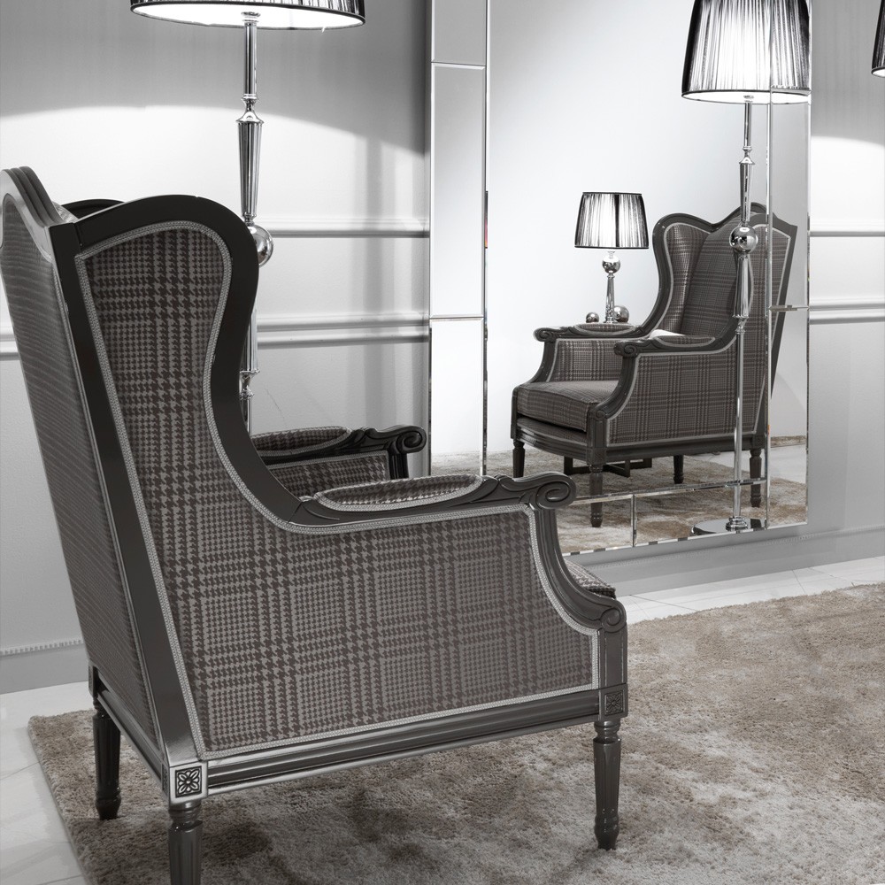 Classic Houndstooth High End Designer Louis High Backed Armchair