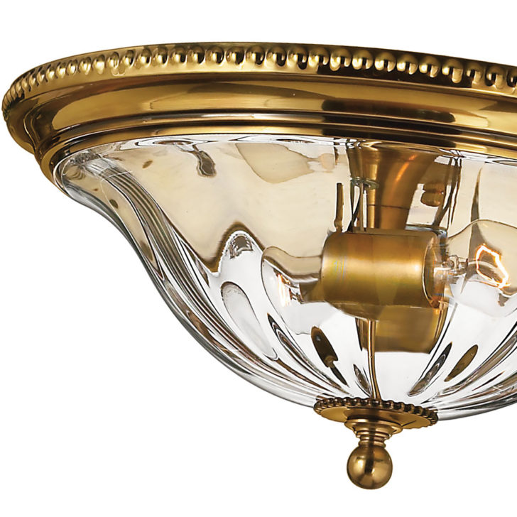 Classic Small Solid Brass Flush Ceiling Light. Notably traditional in a classic New England style, this elegant collection’s focus is not only on aesthetic quality but also functionality. Creating hand-made designs that look fabulous as well as having the ability to stand the test of time. This lovely ceiling light is made of solid brass with a burnished finish, together with clear optic glass reinforcing its timeless style. This flush mounted light makes this a perfect design for use in a bathroom.
