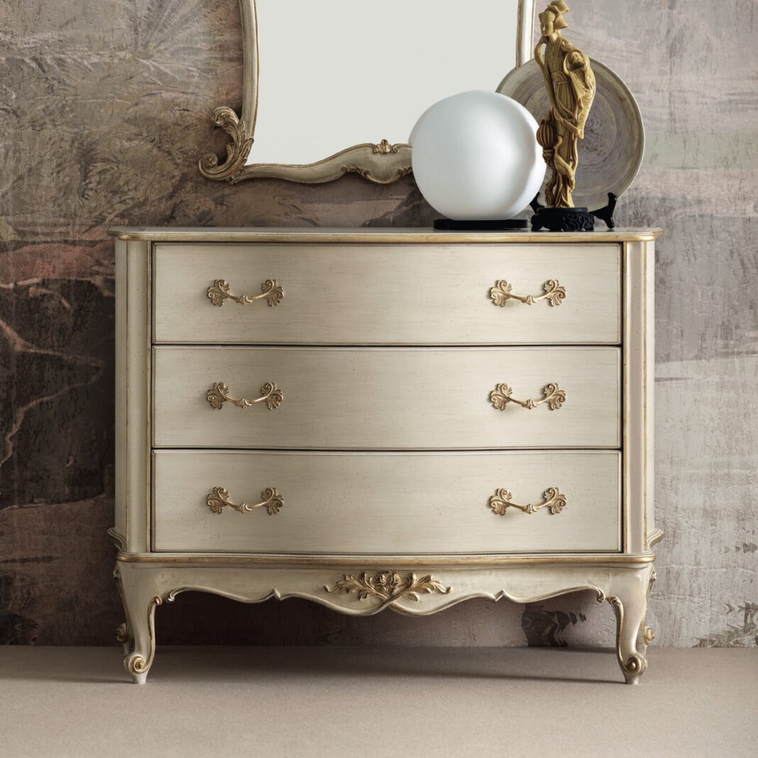 The Classic Style 3 Drawer Chest brings elegance and refined design to any interior, showcasing the best of Italian craftsmanship. It offers a versatile storage solution with a sophisticated touch, making it both functional and stylish. As a striking statement piece, its romantic design adds timeless charm, perfect for enhancing intimate spaces with classic furniture.