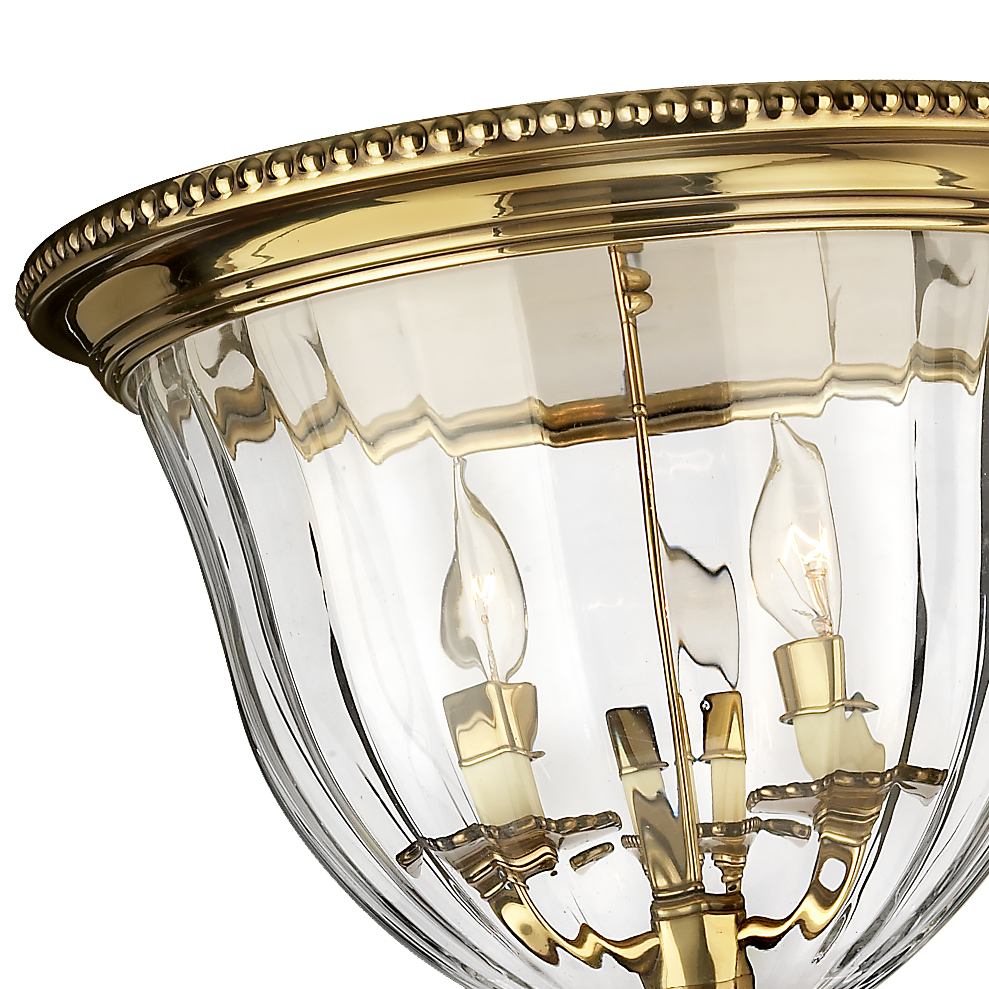 Classic Traditional Solid Brass Flush Ceiling Light. Notably traditional in a New England style, this elegant collection’s focus is not only on aesthetic quality but also functionality. Creating hand-made designs that look fabulous as well as having the ability to stand the test of time. This lovely ceiling light is made of solid brass with a burnished finish, together with clear optic glass reinforcing its timeless style.