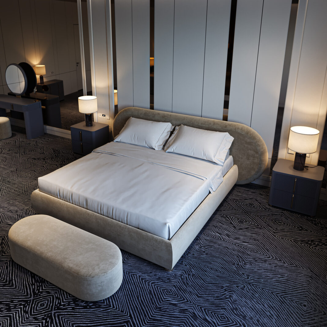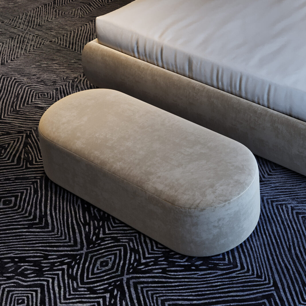 The Contemporary Curved Oval Bench is a stunning expression of modern elegance, offering a versatile perch that invites both relaxation and style. Wrapped in an on-trend velvet, it exudes effortless luxury while embodying refined sculptural Italian contemporary design. Perfect at the foot of a bed, in a hallway, or as a statement seating piece, its bold silhouette makes it a standout addition to any sophisticated space.