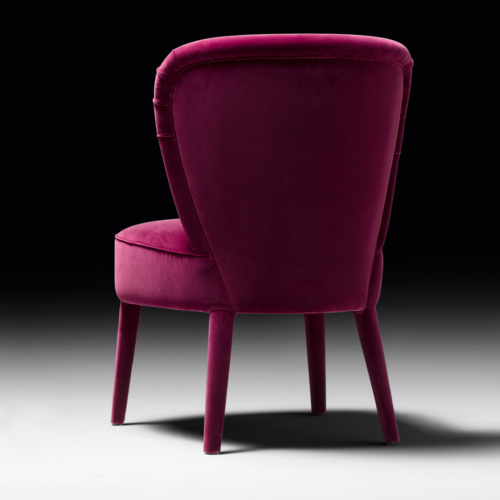Shown here upholstered to the highest standards in the finest pink hues with piping and stitch detail and perfectly matching velvet upholstered legs enhancing the contemporary feel. The structure of the chair is built on a solid beech wooden frame, with a helical steel spring system. Padded in foam and memory foam in various different densities for the ultimate in luxurious comfort. Non-removable covers. Height 90 cm x width 65 cm x depth 70 cm. Seat height 47 cm. Alternatives available in various sizes, finishes, leathers, fabrics including customers own and combinations. Prices will vary.