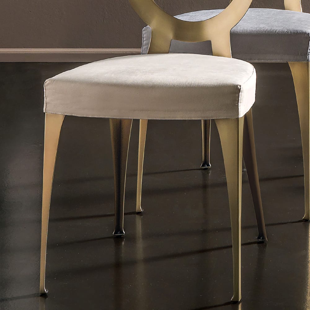 The Contemporary Italian Designer Brass Chair is the most striking addition to any setting. Indulge and spoil your dinner guests with these supremely comfortable chairs. The excellent physical properties of this design and cut-out style design give this chair a unique presence. In the finest stunning brushed brass finish, upholstered and padded to the highest standards in a luxurious ivory leather. Height 89 cm x width 45 cm x depth 55 cm. Seat height 47 cm.