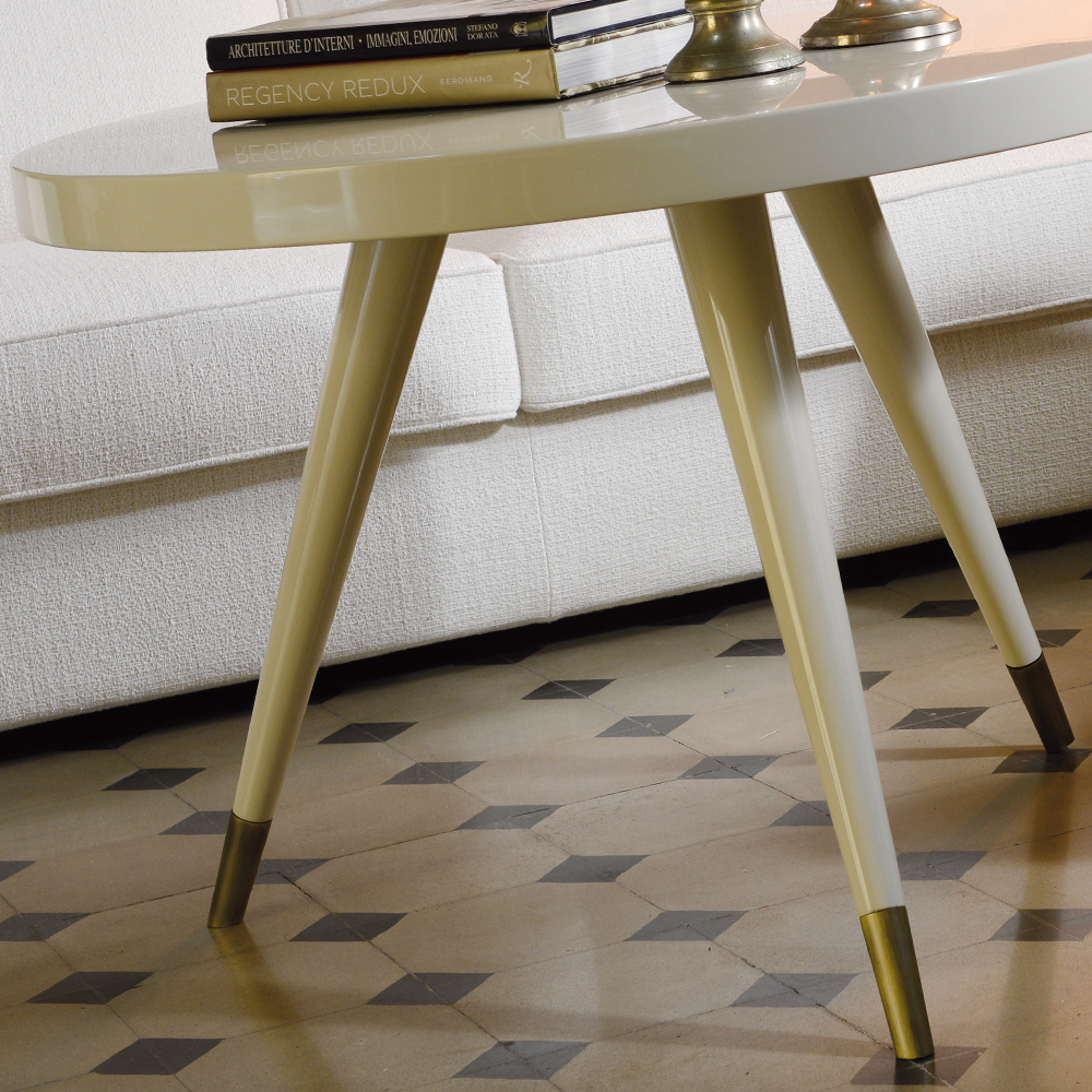 Offering style and glamour, this incredibly stylish table features a remarkable 5 cm deep table top. In a high gloss ivory lacquered finish, and boasting contemporary legs in a matching finish together with metal glides in a bronze finish. Height 66 cm x diameter 80 cm. Also available with a selection of alternative colours and finishes, including matt lacquered and with chrome or brass glides. Prices will vary.