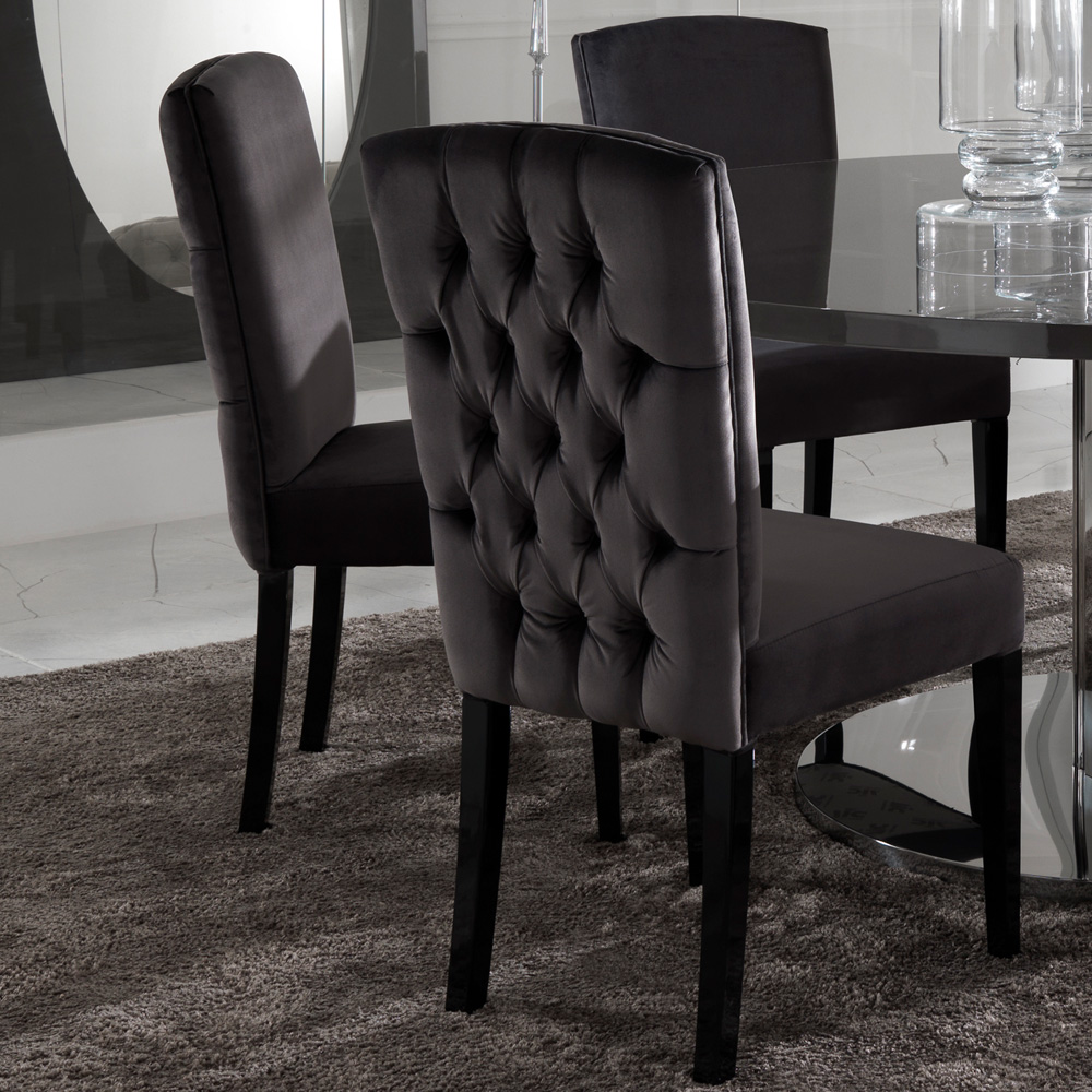 Also in other chair fabrics, customers own and various other leathers including suede and alligator pattern embossed. The table top is also available in alternative finishes including any RAL matt or gloss lacquer colour and gold, champagne and silver leaf. The base is also available in alternative finishes of a polished stainless steel or a 24 carat gold. With alternative table sizes also being an option, including rectangular, extendable and circular too. Prices will vary. Available as a set as shown, or separately for the ultimate in versatility.