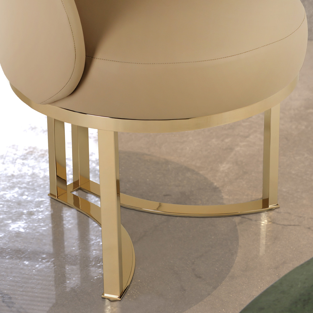 The Contemporary Leather Dining Chair is ideal for lovers of fine design with its charismatic flair and brass lines. To suit both classic or contemporary interiors, owing to its beauty. Adding the utmost in glamour, the epitome of outstanding style. Striking as a dining chair, but equally striking as an occasional chair. The most dramatic of touches. The ultimate statement of superior design.