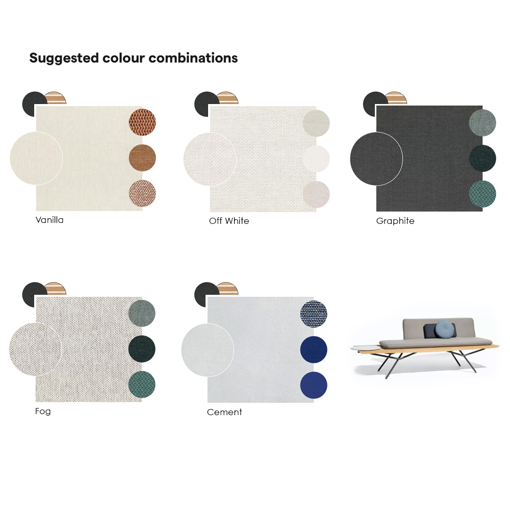 Suggested upholstery options as follows, Vanilla, Off White, Graphite, Fog or Cement. Weight 48 kg. Optional feature fitted marble plate, also available. Height 2 cm x diameter 40 cm, in White or Black. Creating a fabulous striking modern addition.