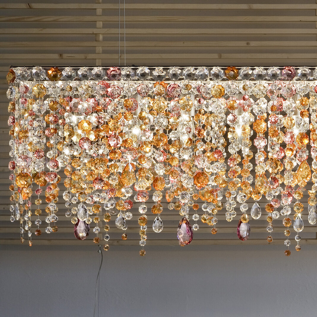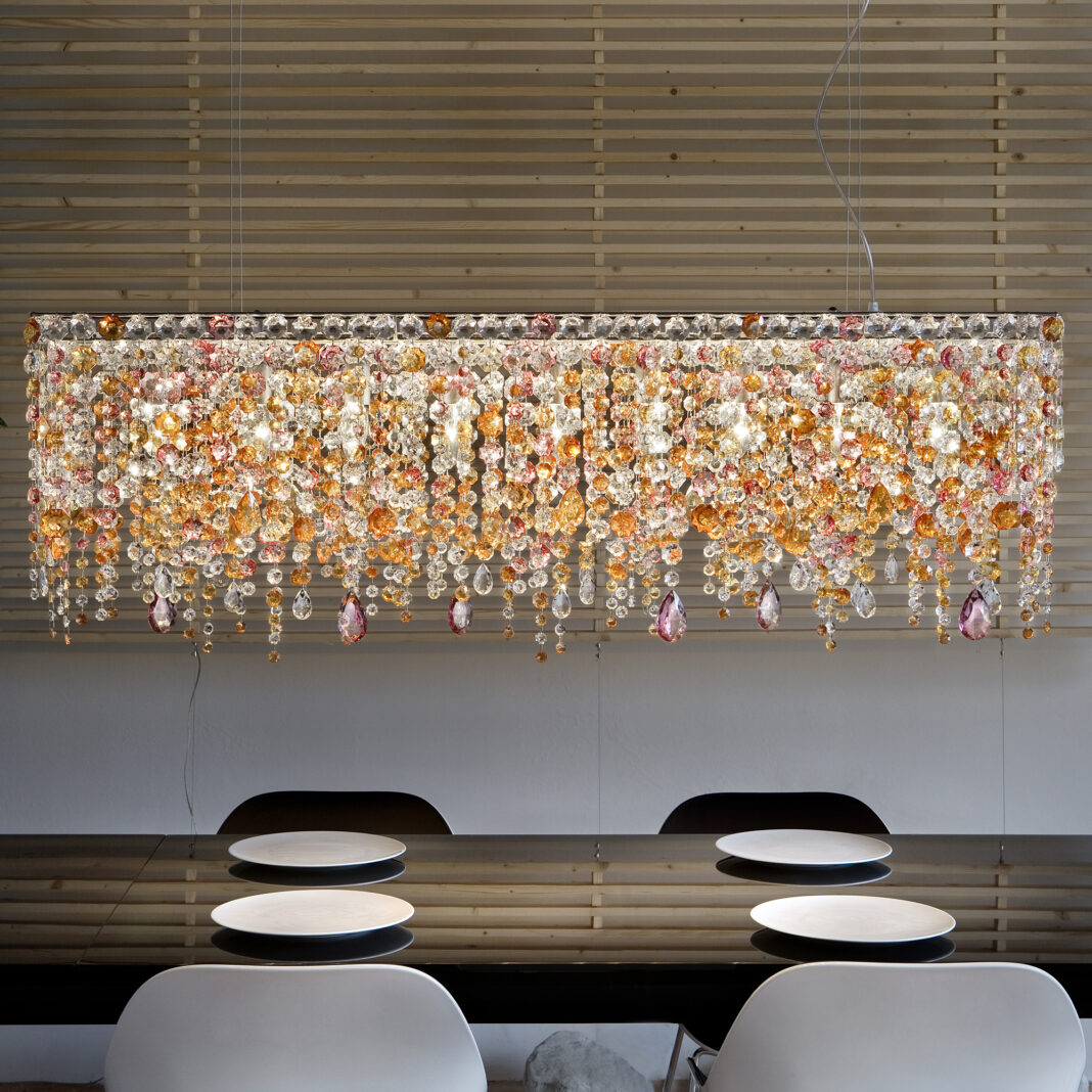 Contemporary Rectangular Multicoloured Crystal Chandelier