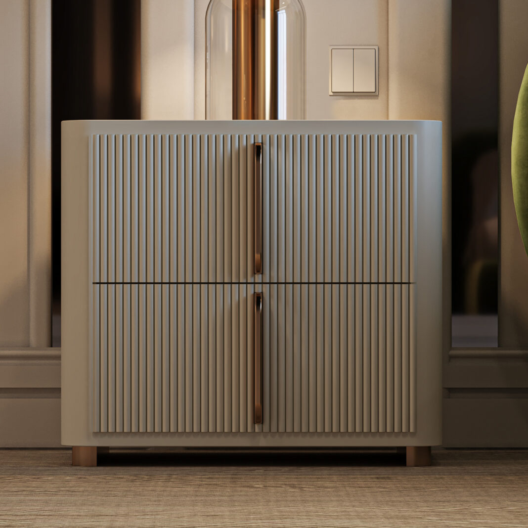 The Contemporary Ribbed Lacquered Bedside Cabinet is a stunning expression of modern elegance. Both functional and beautiful, its bold silhouette makes it a standout addition to any sophisticated bedroom – an effortlessly luxurious statement of refined sculptural Italian contemporary design.