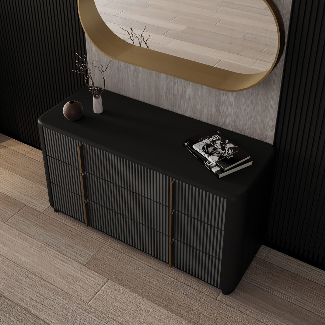 A striking embodiment of modern luxury, the Contemporary Ribbed Lacquered Chest of Drawers pairs sculptural elegance with everyday functionality. Rooted in Italian contemporary design, it delivers effortless sophistication – where form, texture, and craftsmanship converge in perfect harmony.