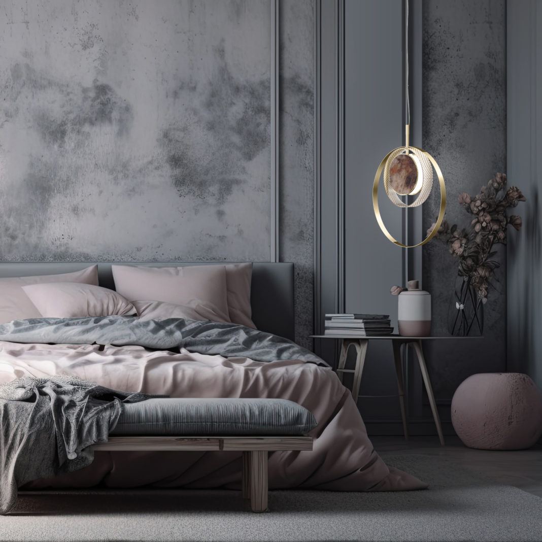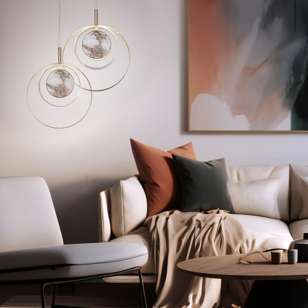 Contemporary Round Pendant Light With Marble Effect