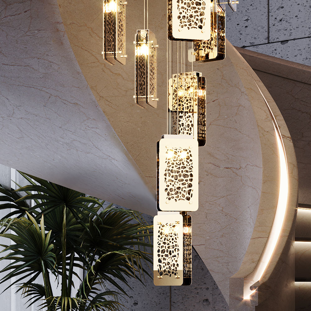 The Contemporary Stairwell Chandelier is a wonderful sculptural light inspired by the Savannah, creating a display of energetic brilliance and shadows. Bringing the wild into high-class décor. Recommended for high ceilings and grand spaces, such as hotel lobbies or double floor staircases. To suit both contemporary or Art Deco inspired interiors. A truly fabulous focus.