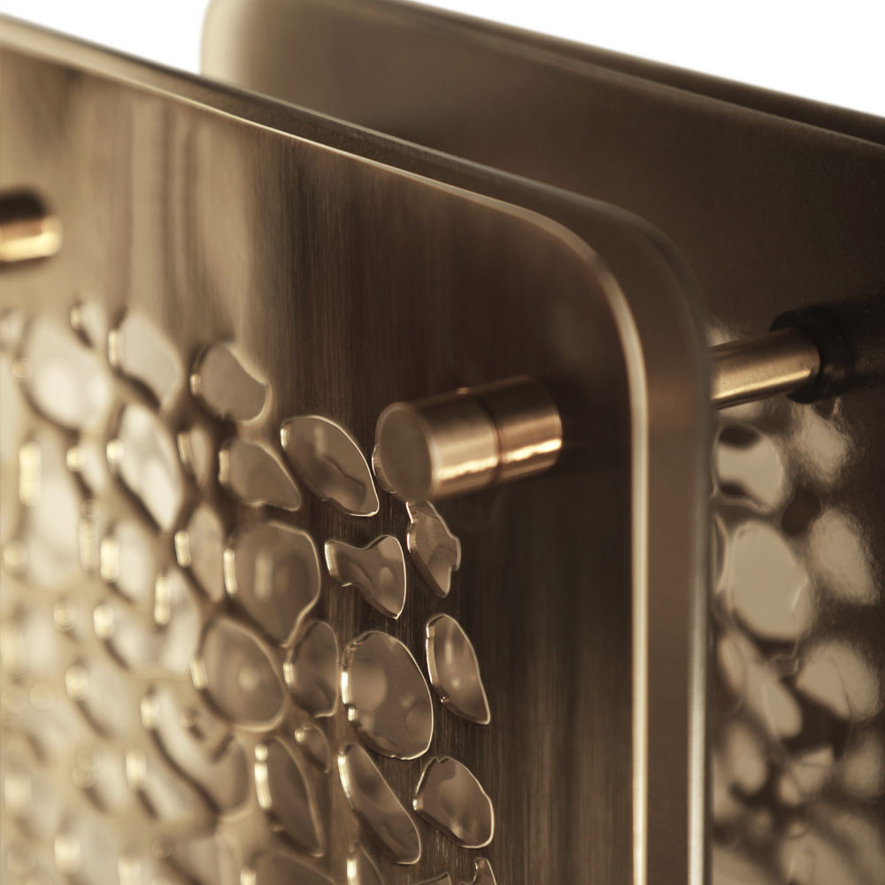 A bold statement, the epitome of outstanding style. Giraffe print laser cut detailing, handcrafted with the ultimate care by professional artisans to create the most beautiful table lamp. Formed in brass and shown here in a polished 24 carat gold finish, each brass plate is a true design masterpiece that carries a bronze glass plate to soften the mesmerising light effect. Supported by an Emperador Marble base with brass feet in a matching gold finish. Creating a truly fabulous focus. Requires 2 x G9 40W Max bulbs, bulbs are included. Also available in other finishes, such as a matt, polished and brushed gold, brass, nickel, black nickel and copper and with various other marbles. Offering the ultimate in versatility. Prices will vary.