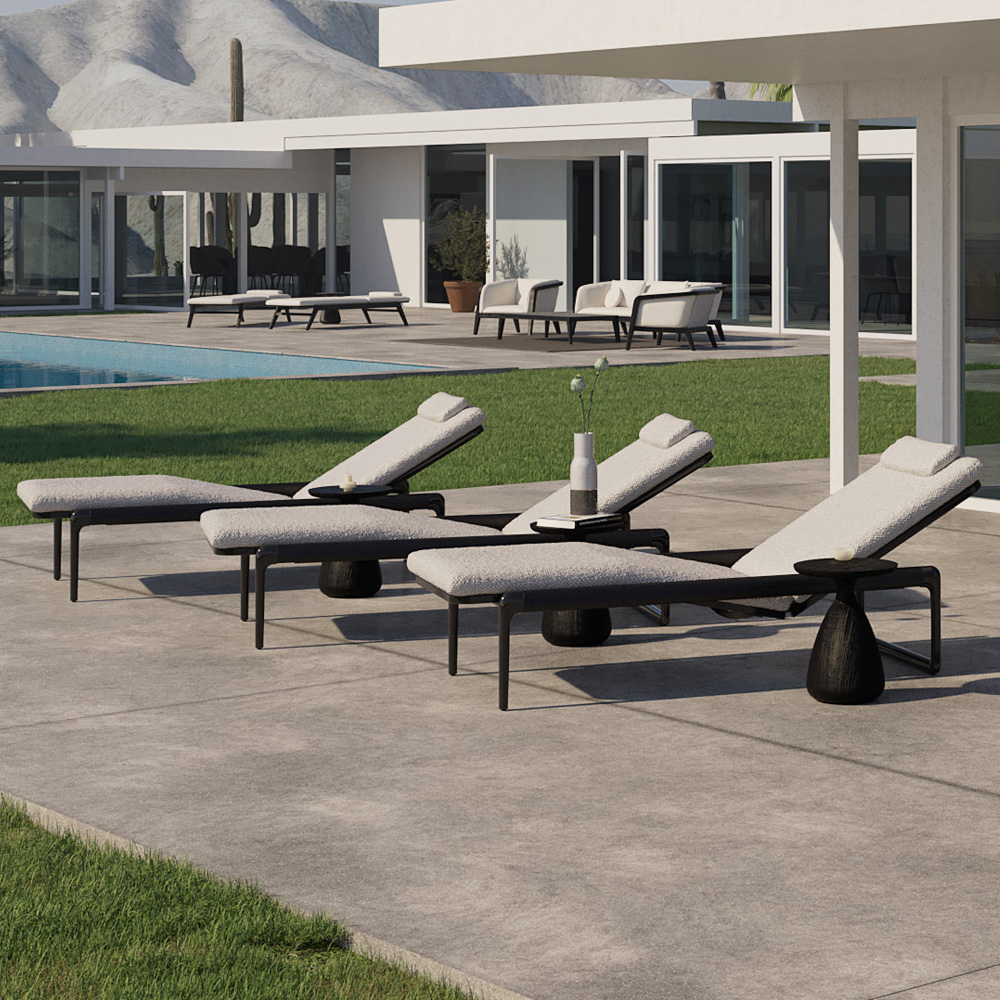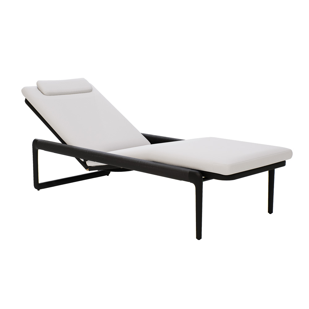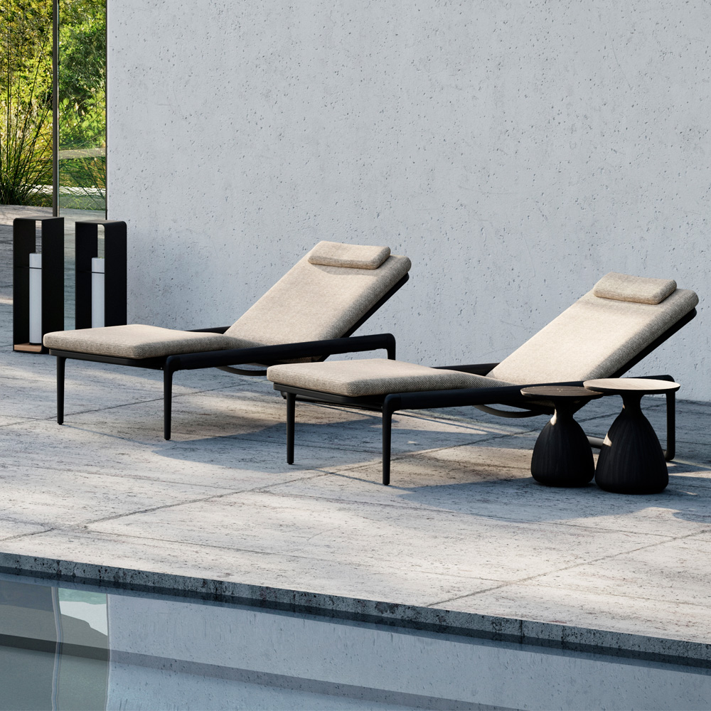 Superbly executed by master craftsmen this design is outstanding in its use of luxury materials and attention to detail. Recline in style. Technical complexity, each piece created by hand. Seat height 38 cm + 8 cm cushions, overall height 54 cm. An intriguing mix of a powder coated aluminium light frame in a flint finish and the beautiful contrasting texture of the contemporary slatted Brushed Teak base. We recommend for good functionality of your recliner system to place the lounger on a flat surface. Swimming pool and sea water resistant and repellent. Easy to clean and maintain. Recyclable, GreenGuard certified, REACH certified. The finest of All Weather Fabrics, that have been specifically developed for outdoor use. The fabric is mass-coloured, UV-resistant and does not fade under the influence of light or sunshine. Cushion set includes a seat cushion, back cushion and headrest. Also available various other combinations, as shown. Prices will vary. Part of a fabulous modular collection as shown. Protective covers also available by request.