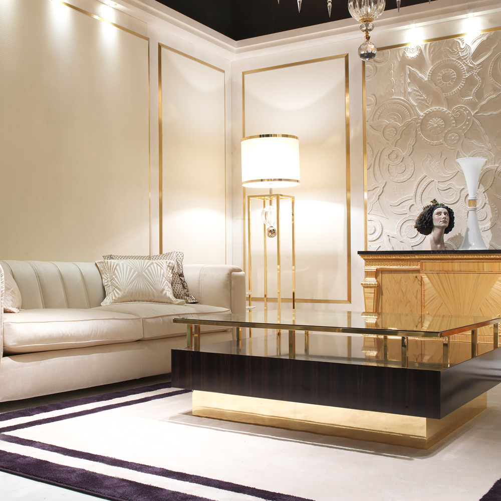 The large Contemporary Veneered Luxury Brass Coffee Table is a true statement, timeless. Current clean lines, a perfect union of materials. A minimal but elegant piece. Offering the ultimate creation of outstanding superior modern design and fine detailing. Perfect for those who have an eye on the classics but also enjoy the comforts of modern living. To suit both classic or contemporary interiors, the perfect addition to any setting. Its versatility is boundless. Sophisticated, of outstanding style and modern design. A stunning outline. In a beautiful ebony veneer with a striking brass frame and base with a contrasting glass top, creating the most dramatic effect. Height 46 cm x width 120 cm x depth 120 cm. Available in alternative finishes and customised sizes. Prices vary. Please allow 9 weeks for despatch depending on the exact specification chosen. Made to a world class standard in Italy with a unique attention to detail, creating a sublime atmosphere for your home.