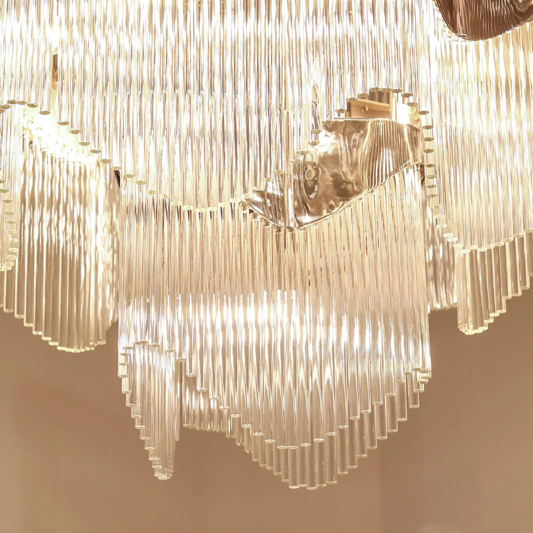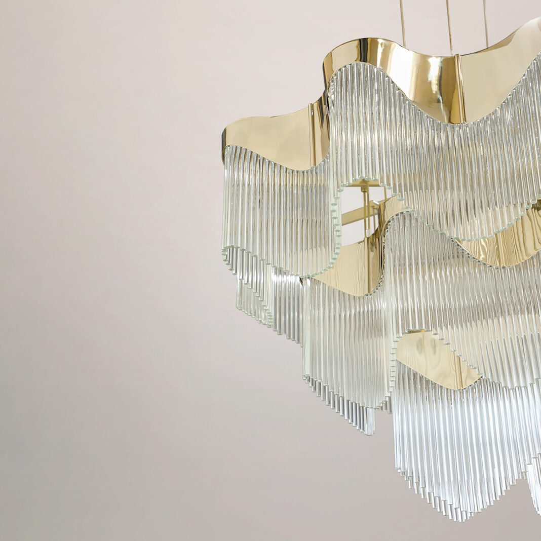 The Contemporary Wavy Tiered Chandelier showcases sophisticated style and sleek linear design, exuding elegance and exclusivity. Its graceful, flowing curves appear to float effortlessly in mid-air, creating a dramatic and captivating focal point. More than just a source of light, this chandelier is a statement piece. Its distinctive form casts a mesmerising interplay of light and shadow, making it a perfect choice for high ceilings and expansive interiors.