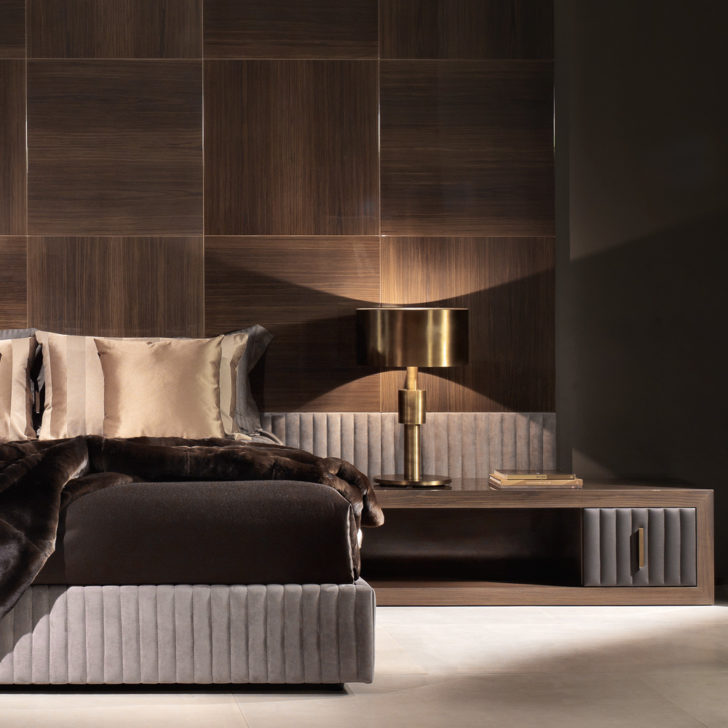 A wooden structure with clean lines finished in a dark walnut glossy veneer casting a luxurious presence. A distinctive warm brown leather offset drawer design detail, beautifully padded and quilted creating the most dramatic of statements. A drawer with soft metal runners for effortless closing, is embellished with handle in brass with a burnished brass finish. Height 40 cm x width 128 cm x depth 45 cm. Weight 49 kg. Available in alternative veneers, lacquers, leathers such as suede and nubuck and fabrics including customers own. Prices will vary. A bedside which is the perfect complement to this piece, and chest of drawers in the same design are also available creating a fabulous collection.