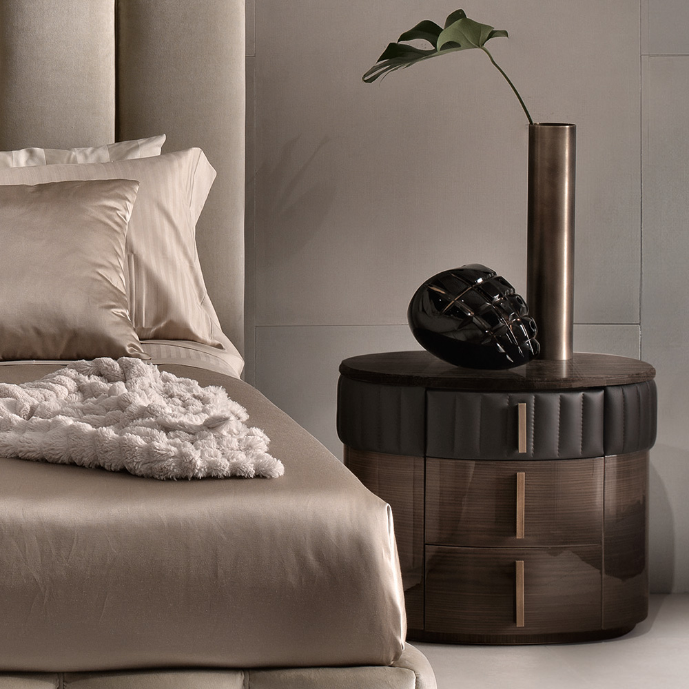 Designer Italian Walnut Veneered Oval Bedside Cabinet
