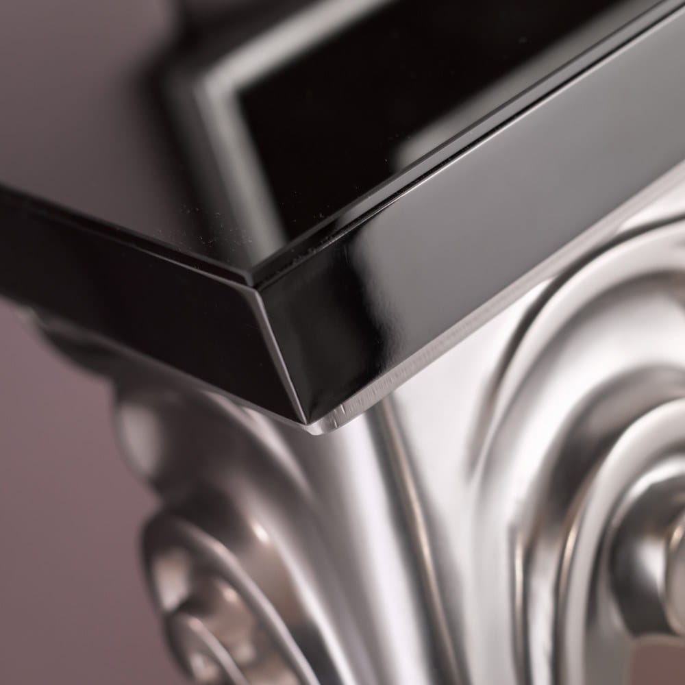 Shown here has a glossy black finish and a smoked glass top with baroque detailed legs finished in pewter. Combined with the Elegant Contemporary Nubuck Black Mirror it will give a glamorous and welcoming atmosphere to any room. Available in alternative colours and finishes.