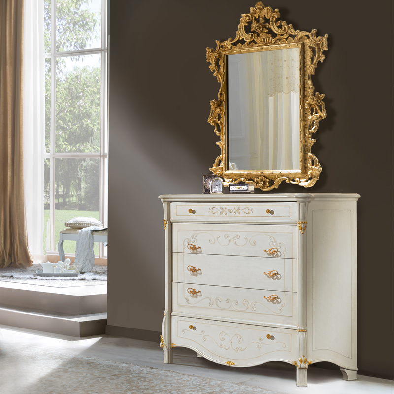 This set is part of a bedroom collection, all of which is also available. Every detail in the Venetian Collection is designed to be exclusive. This range of high-quality products is carved from solid wood and finished in every detail by artisans in low pollutant paint to create an environmentally friendly finish. Made in Italy to a world class standard – modern but with a solid base in tradition. Lead times on this collection can vary between 3 and 8 weeks depending on the exact specification chosen. Please ask if you require any further information.