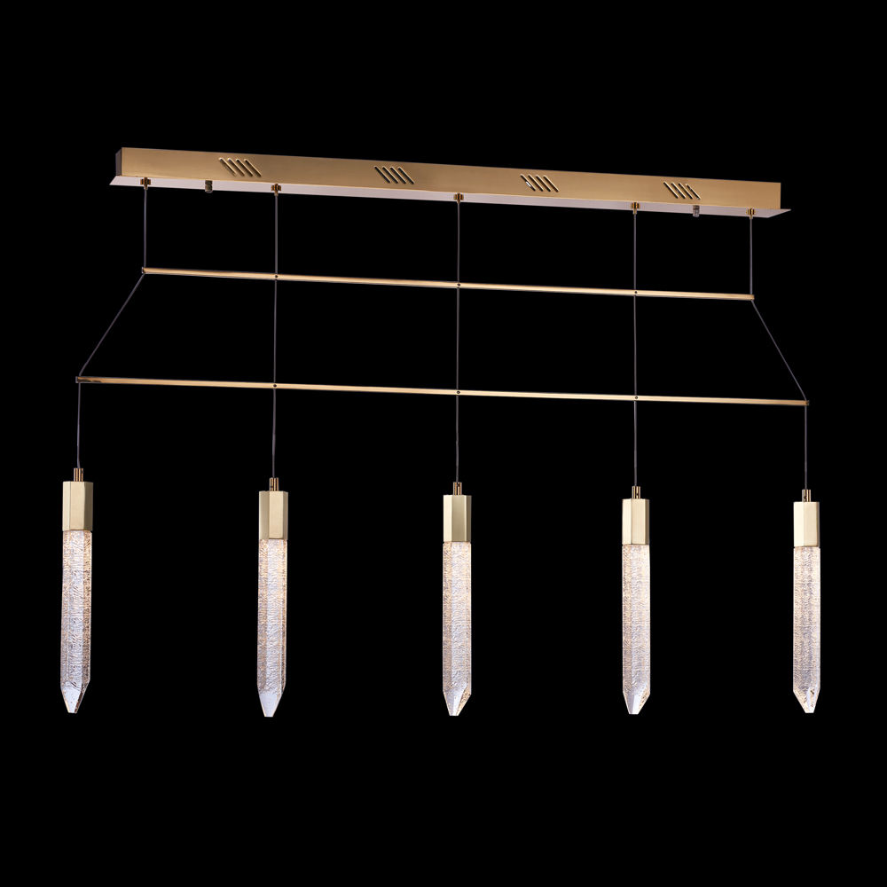The Exclusive Gold Pendant Light Bar is a truly eye-catching piece, perfect for making a statement in your home. This gorgeous fixture would be ideally-placed in a living room, dining room, large reception area or over a kitchen island.