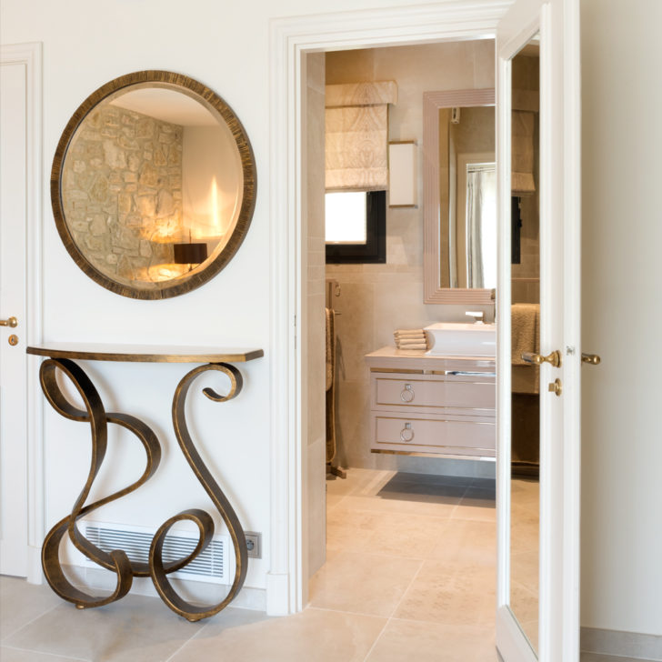 Exclusive Round Brushed Gold Overmantle Mirror. This sophisticated collection of furniture delivers stylish unconventional designs. Combining modern and classic features together with elegant elements, furnishing your home with impeccable individual style. Each design is created by highly skilled furniture makers, notably passionate about their craft, presenting each item as an exclusive piece.