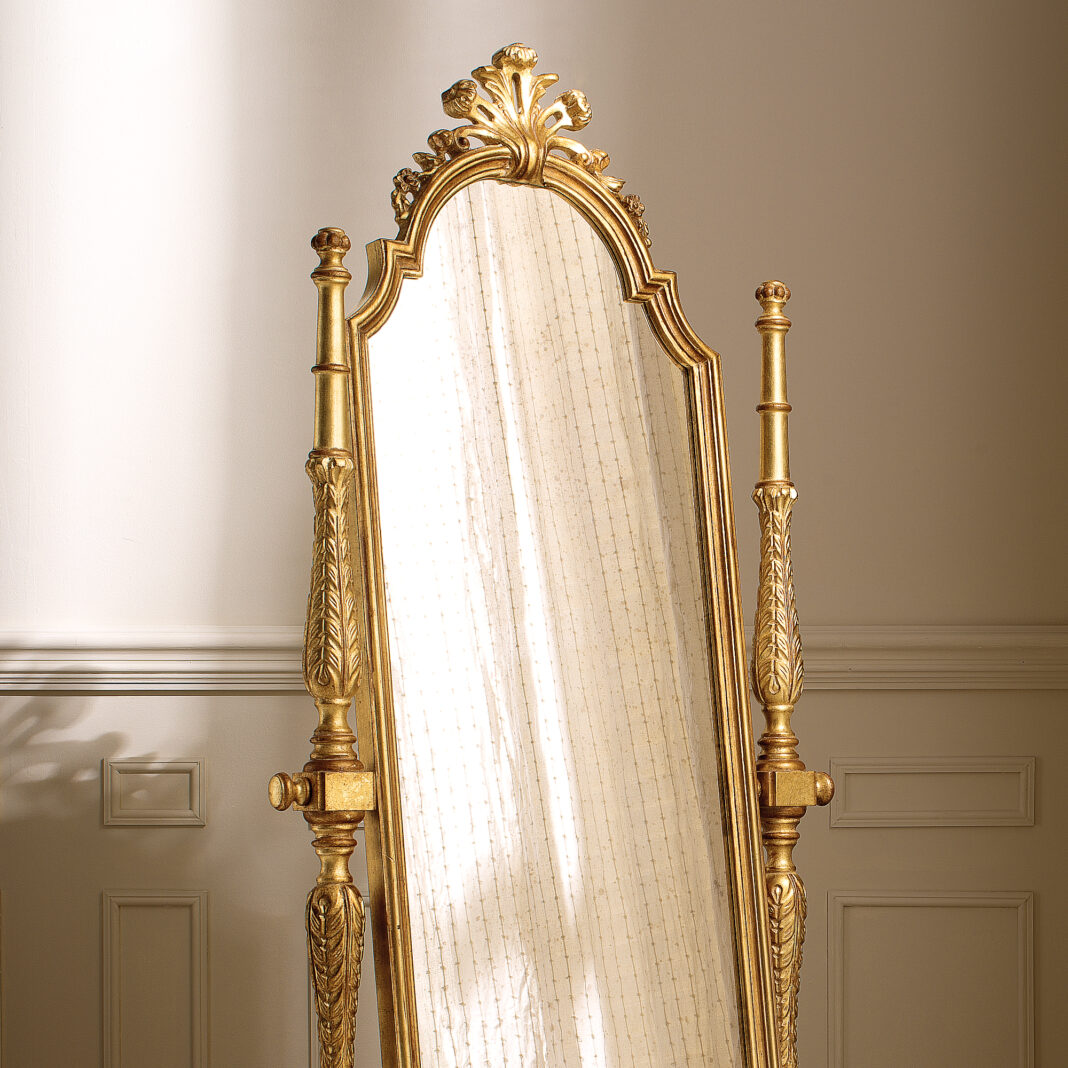The Freestanding Rococo Style Tilting Mirror showcases intricate carved details, perfectly capturing the elegance of Rococo influences. This stunning statement piece embodies the essence of Italian design, infusing any interior with timeless grace and sophistication. Whether standing in a hallway, bedroom, or dressing area, this mirror transforms its surroundings with an air of timeless refinement. Perfect for those with an eye for luxury, this mirror elevates any interior, blending classic beauty with a sense of contemporary grandeur.
