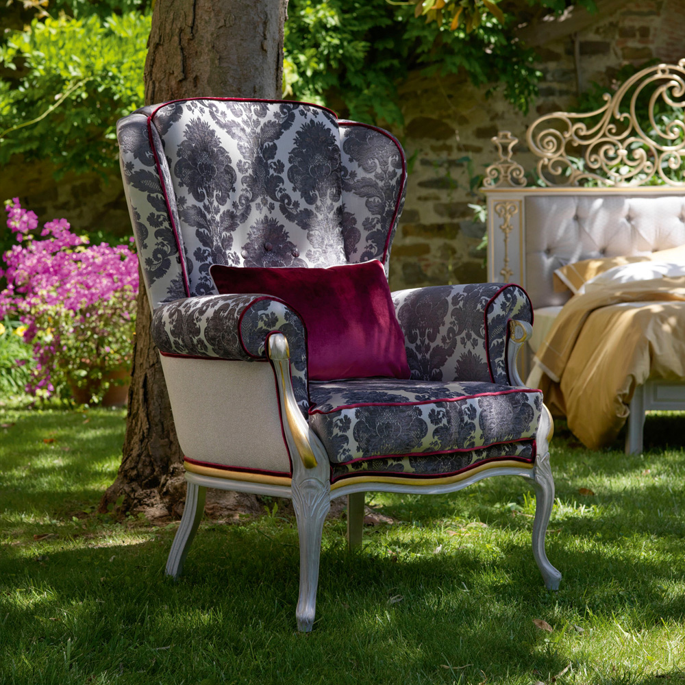 The High Backed Venetian Style Winged Armchair, finely executed by master craftsmen this versatile piece is outstanding in its use of luxury materials and attention to detail, elegant feminine curves creating the most expressive of outlines. The glamorous timeless design of this beautiful winged chair would be the most striking of additions to any setting. A statement of superb quality, offering the ultimate in supreme luxury and style.