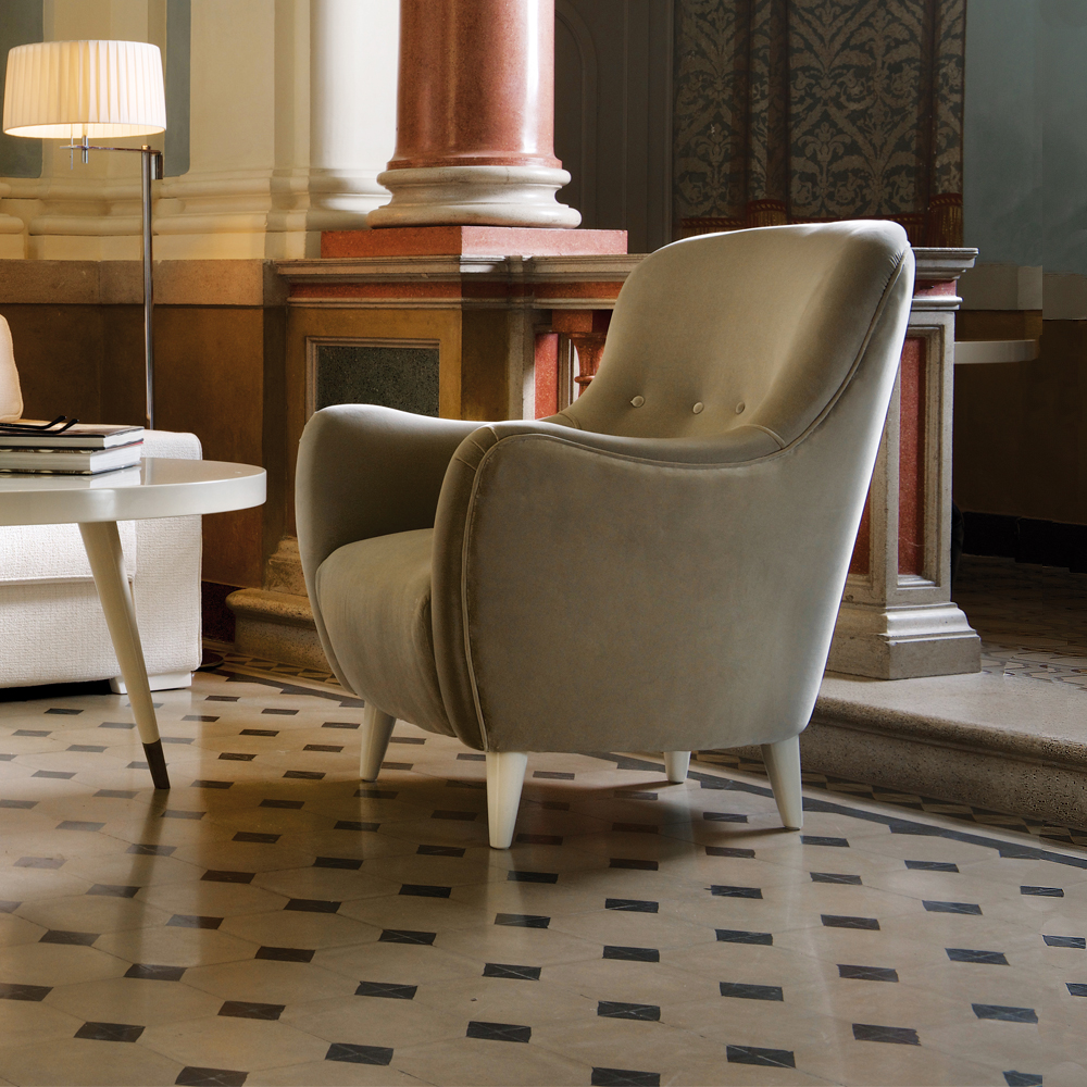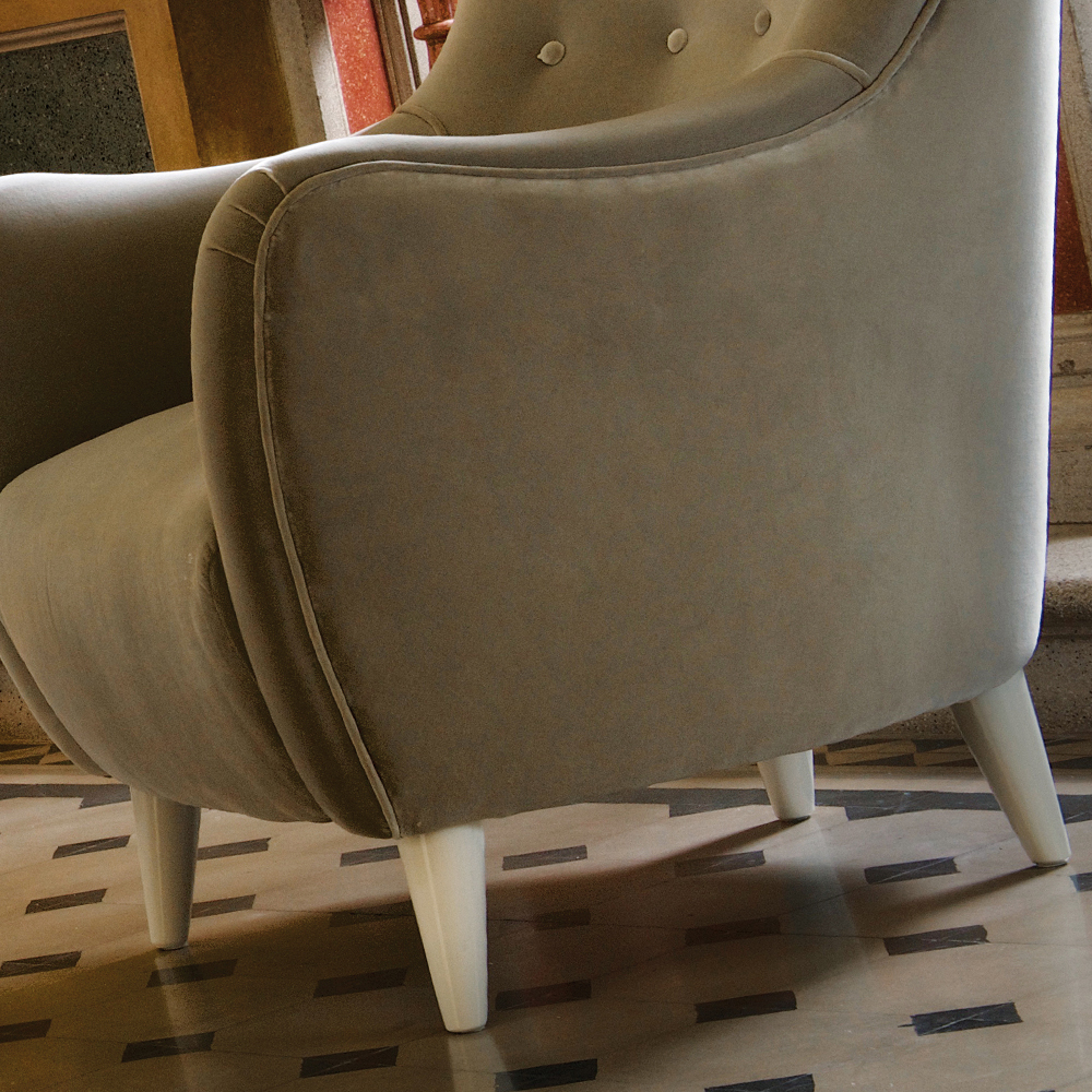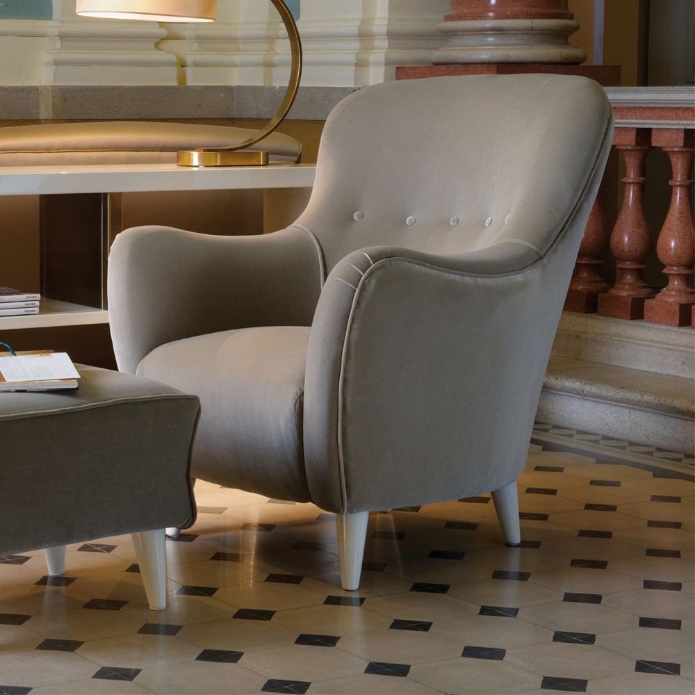 The High End Designer Armchair is a remarkable design offering unmistakable style and comfort. Superbly executed by master Italian craftsmen this sophisticated design is outstanding in its attention to detail. This curvaceous design makes a superb focus and a stylish addition to any living space. Featuring button detailing, this exquisite design offers a superbly comfortable seat. Luxurious, truly reflecting refined contemporary elegance.