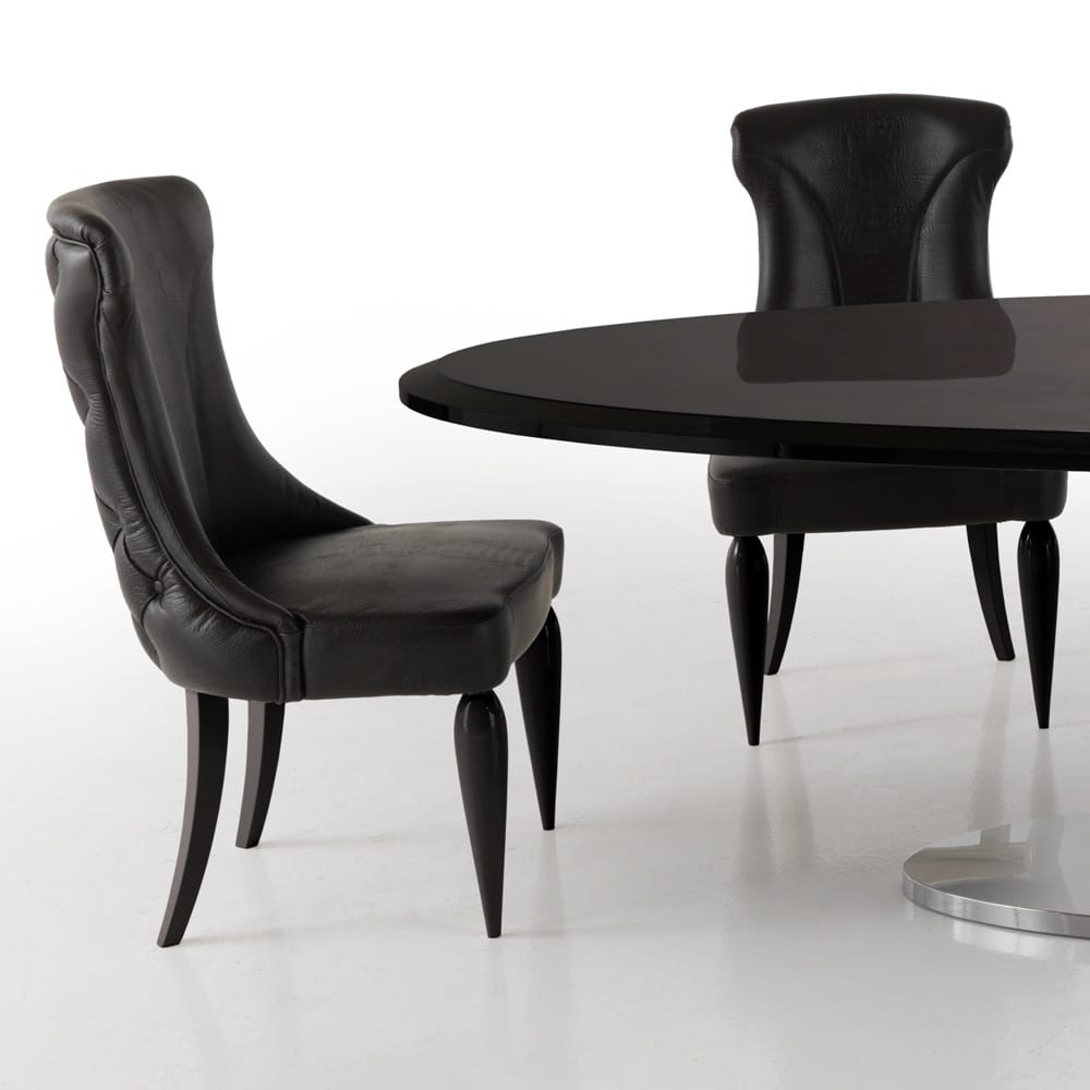Paired here with the Italian Designer Leather Dining Chair, indulge and spoil your dinner guests with these supremely comfortable chairs affording long convivial dinner conversations. Combining the ultimate in style and comfort. Carved from solid beech wood and finished in a high gloss RAL Lacquer, and superbly padded and upholstered to the highest industry standards using the finest Italian black premium leather.