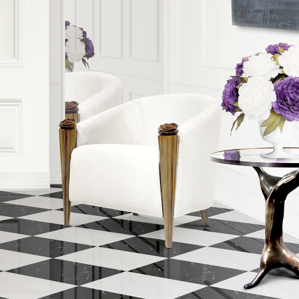 The High End Designer Upholstered Tub Armchair With Flower Detail is an example of charming beauty, original and ornate. Exquisitely opulent, a small armchair that would suit both a classic or contemporary interior. The perfect addition to any room, lounge or lobby – adding the utmost in style to any setting. A statement of outstanding sophistication, elegance and superb comfort. Perfect those who have an eye on the classics but also enjoy the comforts of modern living. A touch of sophistication and opulence which creates the most striking outline. Timeless glamour.