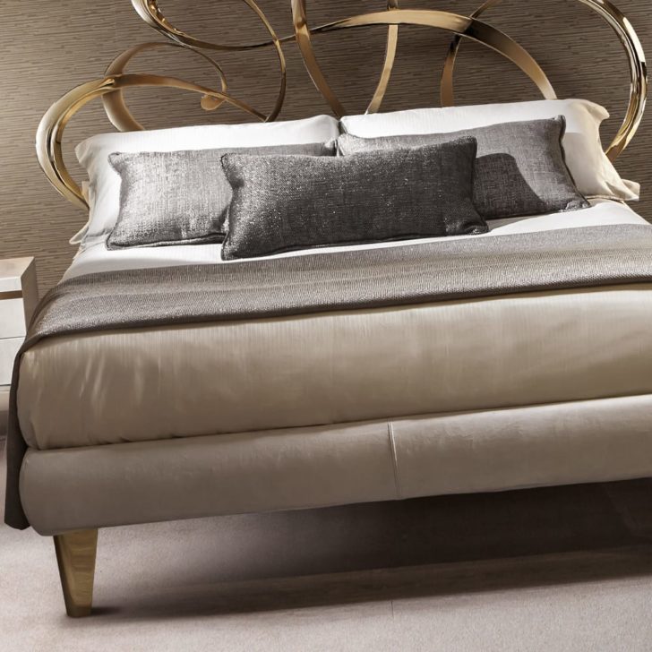The High End Italian Gold Plated Designer Bed offers a superb dreamlike style and focus, instantly transforming bedroom interiors. A contemporary structure with the 3 dimensional illusion of movement, a true statement in the sinuous flow and lines of its design. Offering a sophisticated timeless focus with unrivalled charm and grace. Simply stunning.