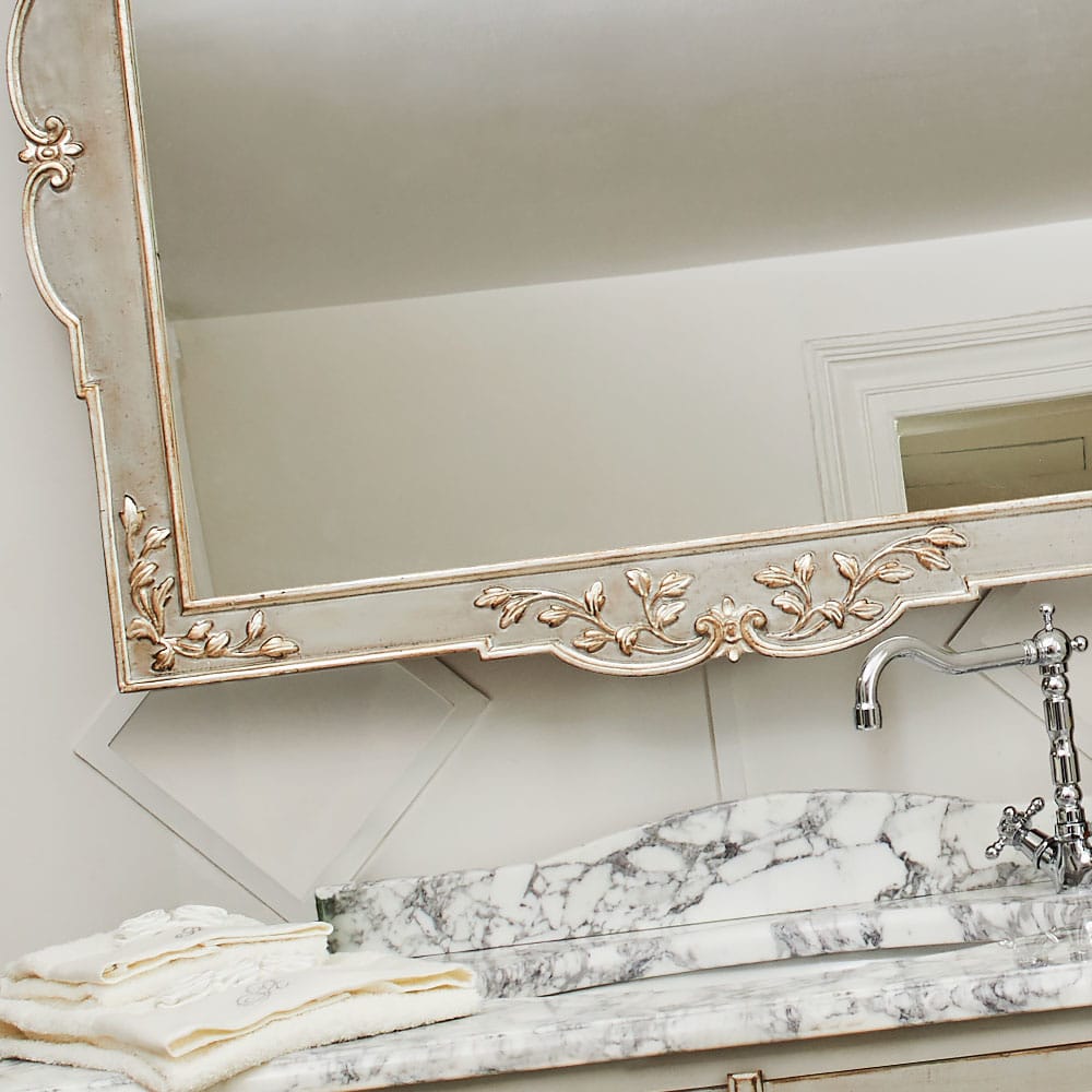 This mirror is part of fabulous bathroom collection, such as the High End Louis XVI Inspired Marble Bathroom Vanity Unit which is also available here at Juliettes Interiors. The Luxury Italian Collection Bathroom range creates a warm, intimate and reassuring atmosphere. Products are functional and aesthetically innovative, created by the perfect attention to detail. All brought together to give you the feeling of relaxation and well being. Made to the highest standards. As these items are made to order and fully handcrafted lead times can vary. Allow 12 weeks for dispatch depending on the exact specification chosen.