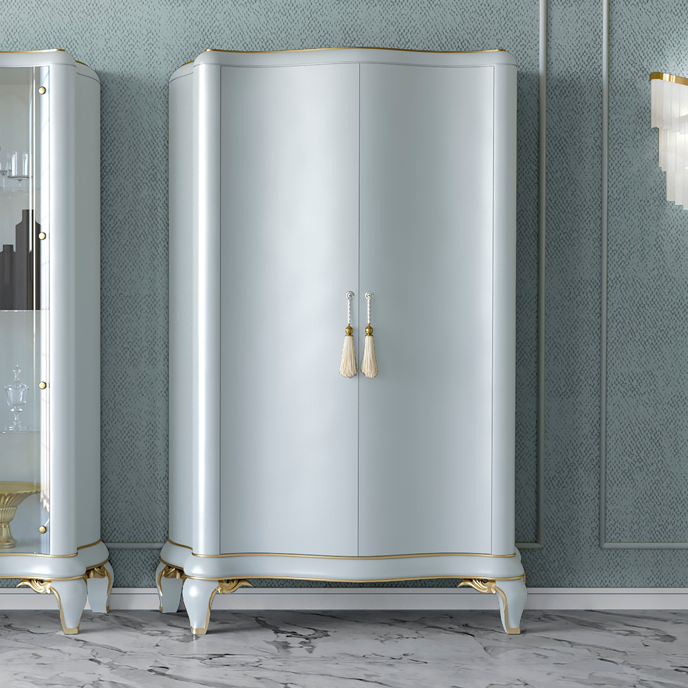High End Luxury Lacquered Cabinet. With its softly curved outline and beautifully fresh colour this superbly stylish cabinet provides an elegant addition. Beautifully crafted from solid wood featuring a luxurious creamy pale blue lacquer. Finished with brass tassel style handles and subtle gold leaf details. Combining perfect style with functionality, this cabinet can be used in a variety of areas within your home providing an exceptionally glamorous storage solution indeed.