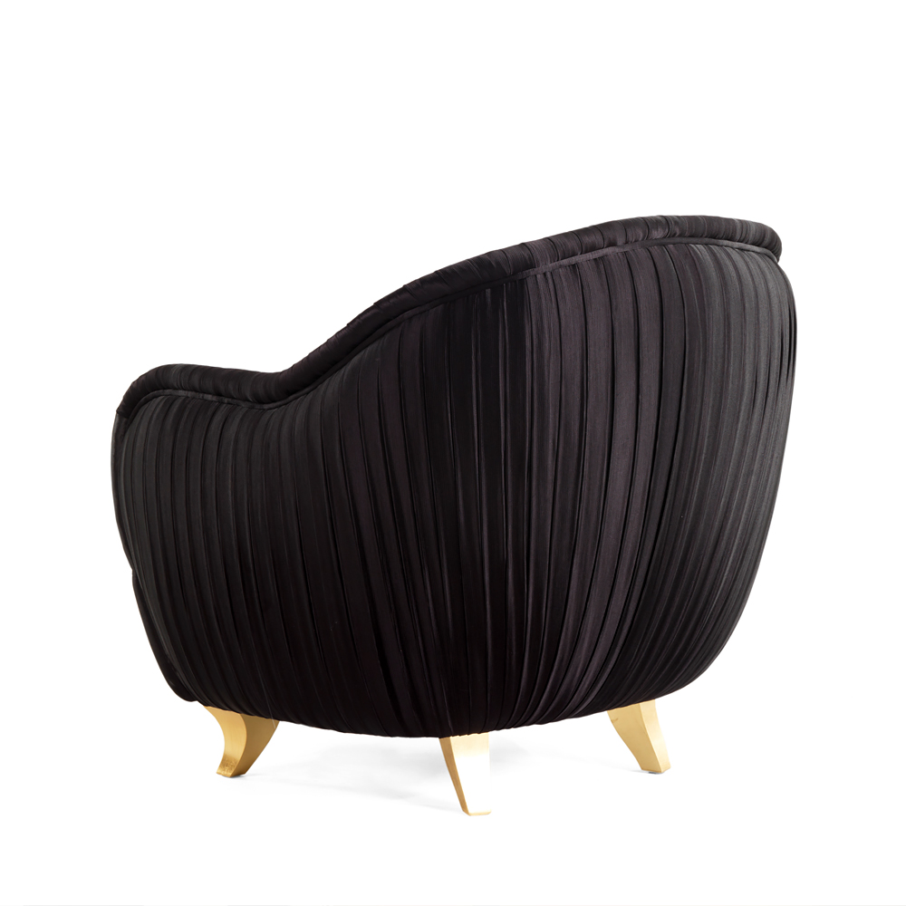 High End Black Pleated Luxury Occasional Armchair