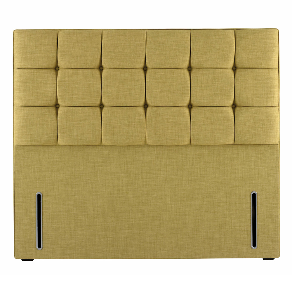 Shown here upholstered in Linoso 500 Lemon. This headboard is available in four design styles to create a dramatically different look. Offering the ultimate in versatility. For a deep divan choose from an elegant Euro headboard, 132cm in height and upholstered all the way to the floor, available in the same width as the divan (Euro-Slim) as shown here, or slightly wider than the divan (Euro-Wide).