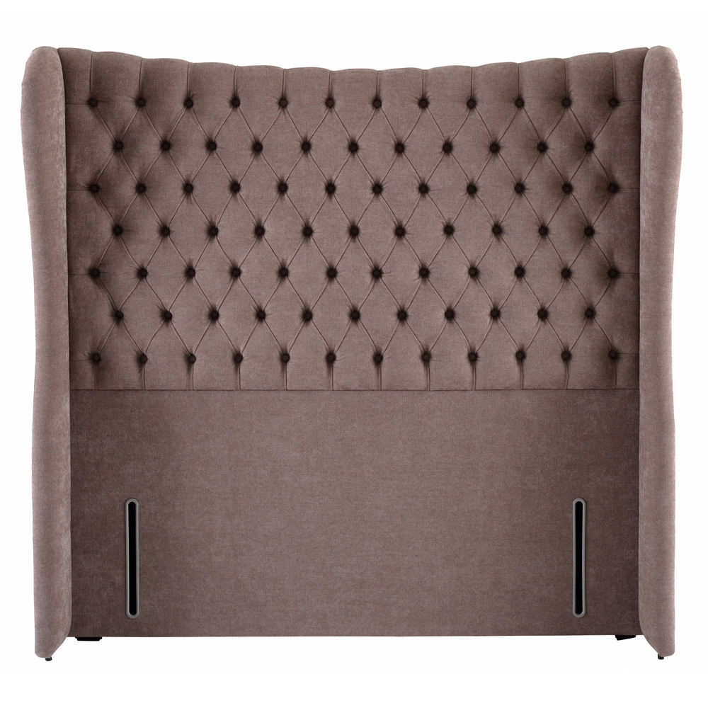 The Hypnos Winged Euro-Wide Elizabeth Tall Headboard, a sumptuous floor standing Euro-Wide piped headboard with ‘P’ shaped wings, a concave, curving inward header and a deeply buttoned central panel. A beautifully upholstered headboard providing a bold ‘silhouetted’ statement to frame your bed, creating a stunning focal point and finishing touch to both the bed and the bedroom. An elegant headboard for a deep divan, the Euro-Wide is upholstered all the way to the floor and slightly wider than the divan by design. Please note that with a Winged headboard it is not advised to go with the 4 standard drawers divan due to the shape of the curves.