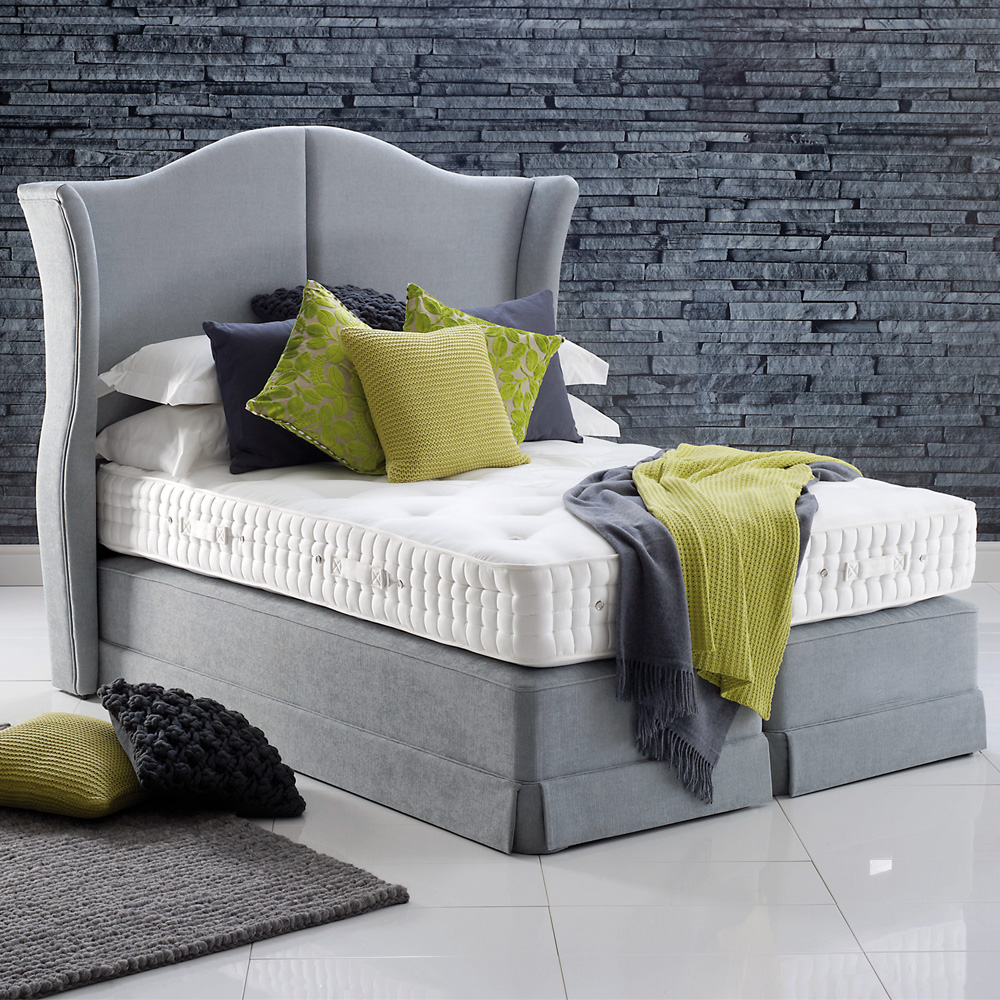 The Hypnos Winged Euro-Wide Katherine Tall Headboard is opulent, with a curved top and unique curved wings which wrap around the head of the bed for a true design statement. A beautifully upholstered headboard providing a bold ‘silhouetted’ statement to frame your bed, creating a stunning focal point and finishing touch to both the bed and the bedroom. An elegant headboard for a deep divan, the Euro-Wide is upholstered all the way to the floor and slightly wider than the divan by design. Please note that with a Winged headboard it is not advised to go with the 4 standard drawers divan due to the shape of the curves.