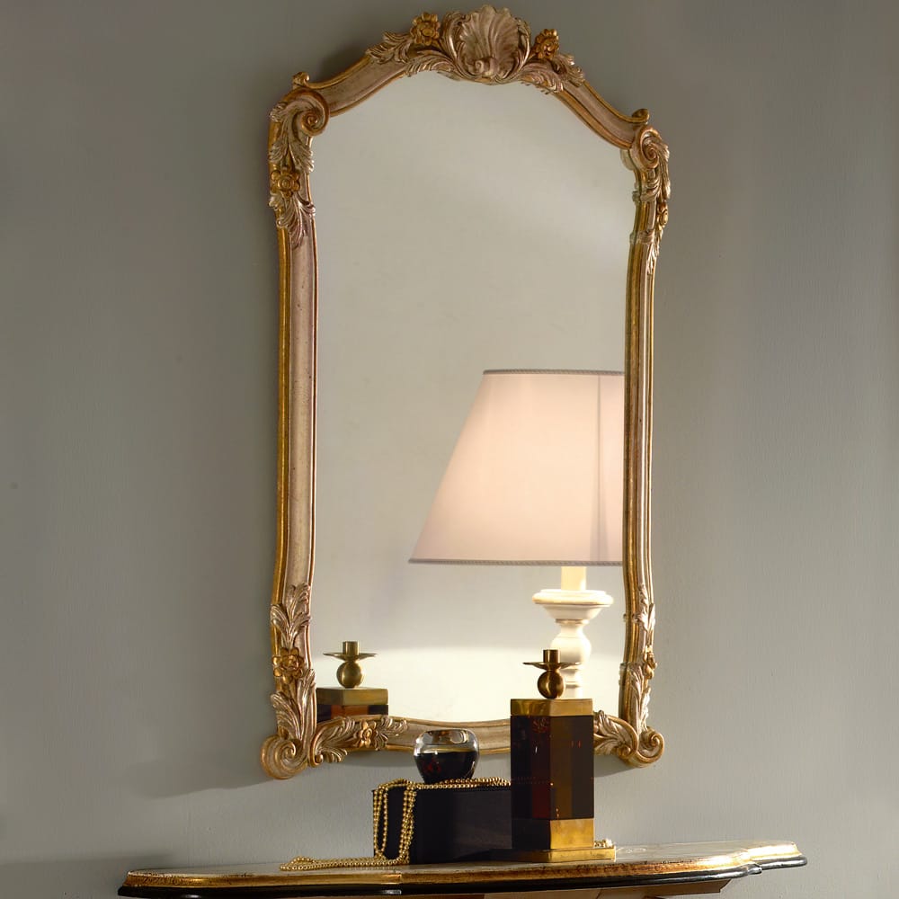 Designed in classic styles making their intricate carvings and painted detail the defining aspect. This fabulous console table features an antique ivory finish and painted marble effect with gold and black detailing accentuating the most elegant of hand painted botanical flamboyant elements, creating a display of brilliance. Height 87 cm x width 118 cm x depth 39 cm. Feature with the co-ordinating wall mirror for an outstanding focus in an antique ivory finish with hand painted gold and silver detailing. Height 110 cm x width 72 cm. Also available to order in different colours, sizes and finishes by request. Prices will vary.