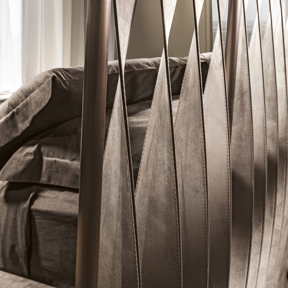 Italian Designer High End Bed With Twisted Leather Headboard