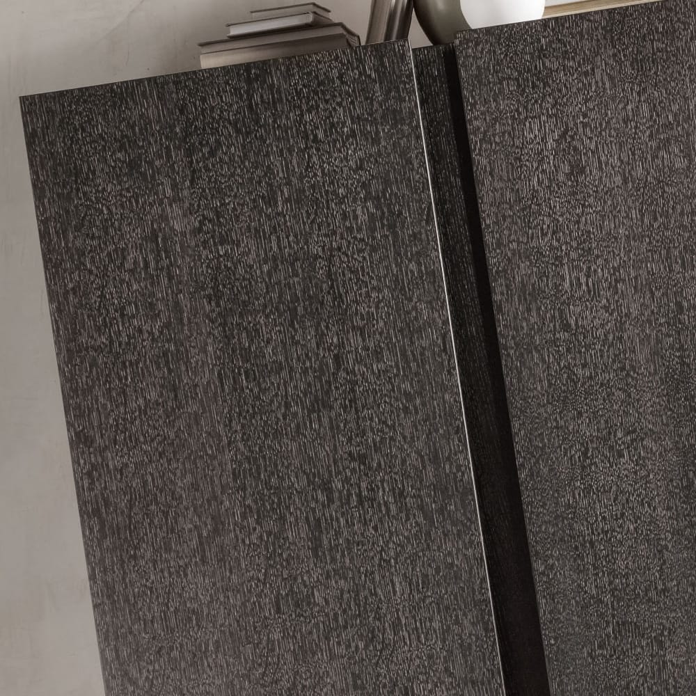 An exquisite wooden structure shown here finished in a carbon oak veneer. BoastingĀ 2 large doors, fitted with a soft-close mechanism for effortless closing. Interior and doors feature internal compartments, displaying stunning polished glass shelves, bottle or glass holders and safety bars. Wonderfully nestled on the most refined, shaped metal legs in a pale gold finish. Creating a fabulous focus. Height 165 cm x width 135 cm x depth 54 cm. Available with alternative finishes, including a cream oak finish and various high gloss lacquers, and also legs and handles finished in bronze or antique iron. Prices will vary.