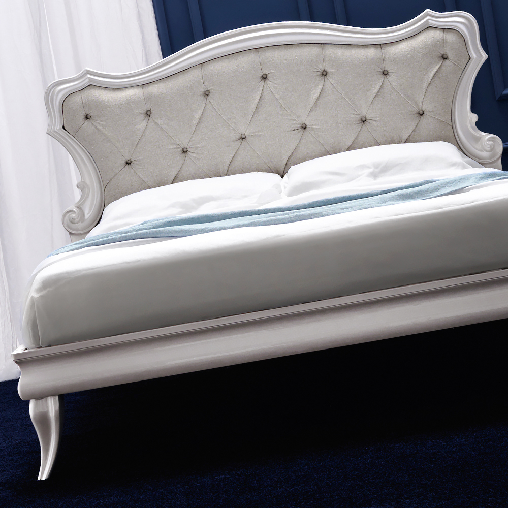 Italian Designer Pearl White Upholstered Bed