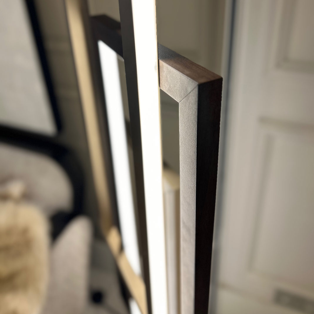 Featuring a metal structure in a light gold finish, holding four rectangular elements in aluminium and beautifully finished in light gold, dark gold and a striking statement walnut finish. With integrated LED lighting. Weight 10 Kg. LED 160 W. Power supply: 80-260Vac.