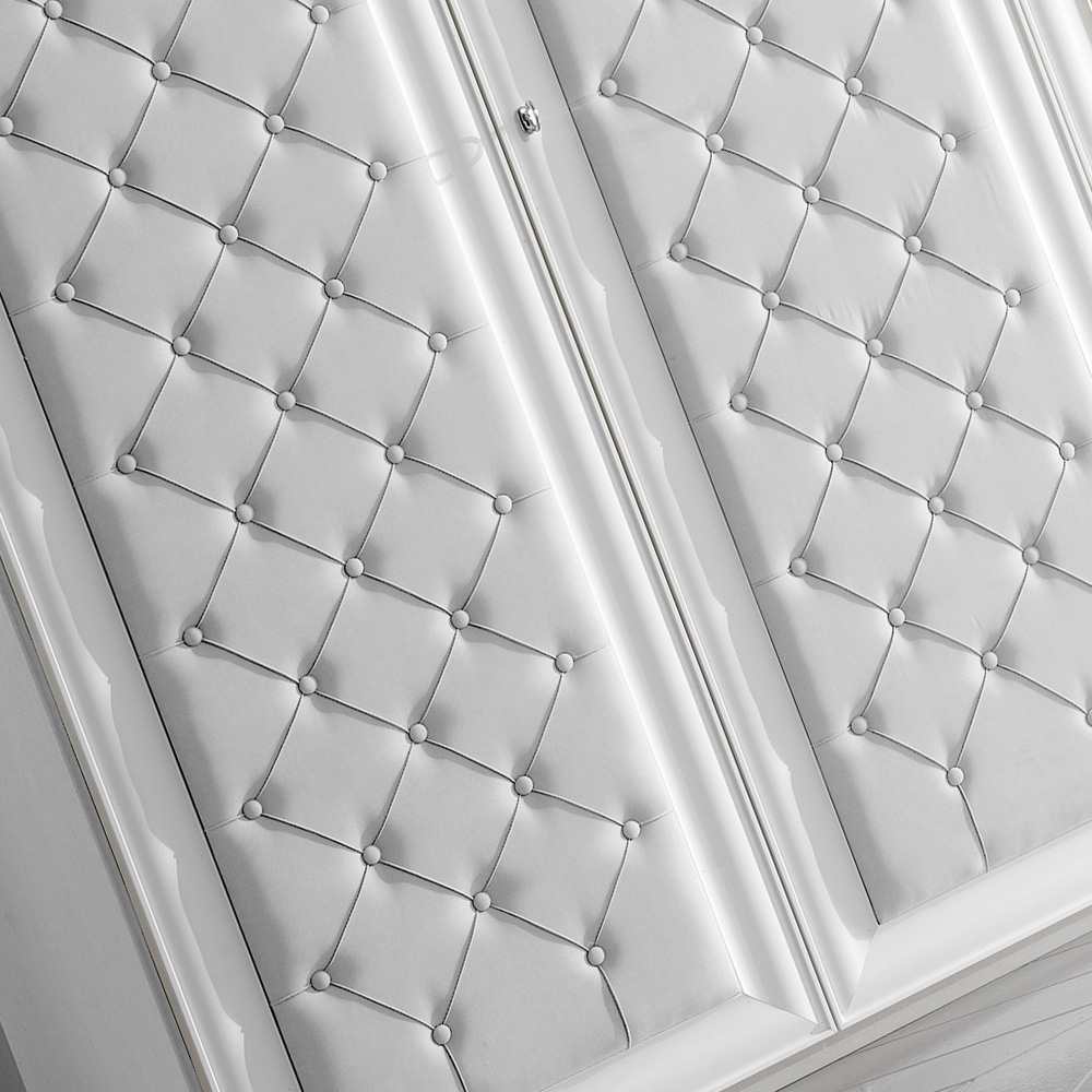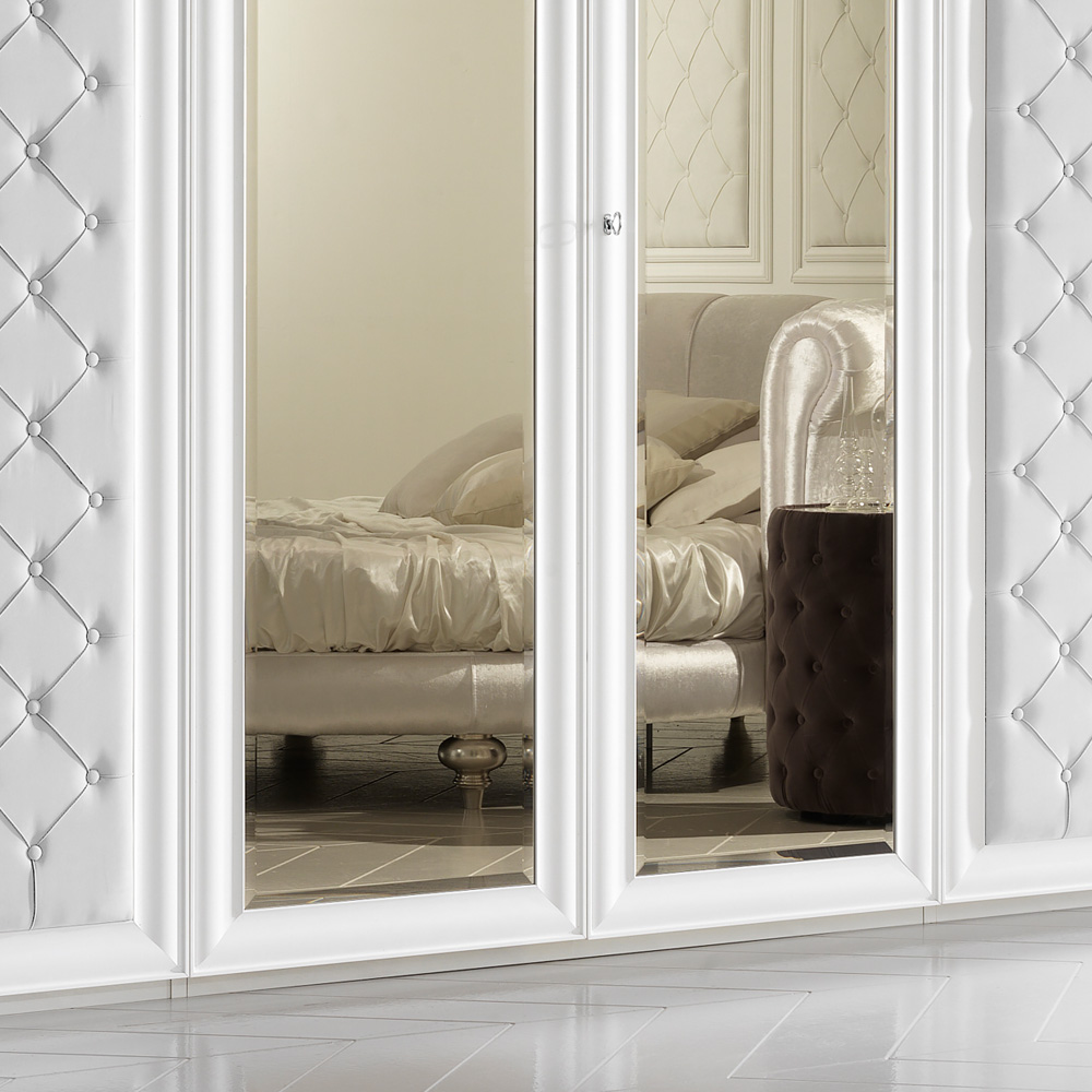 This wardrobe is also available in other finishes such as any matt or gloss RAL lacquer colour, gold, silver or champagne leaf, natural or bronze glass and various other fabrics including customers own, leathers such as traditional, nubuck, suede and alligator embossed in a variety of colours. Above all truly versatile.