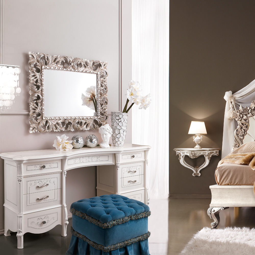 This beautiful statement set adds style to any setting. The dressing table also has the versatility to be used as a desk. Available separately or as a set as shown. Every detail in the Venetian Collection is designed to be exclusive. This range of high-quality products is carved from solid wood and finished in every detail by artisans in low pollutant paint to create an environmentally friendly finish. Made in Italy to a world class standard – modern but with a solid base in tradition. Lead times on this collection can vary between 3 and 8 weeks depending on the exact specification chosen. Please ask if you require any further information.