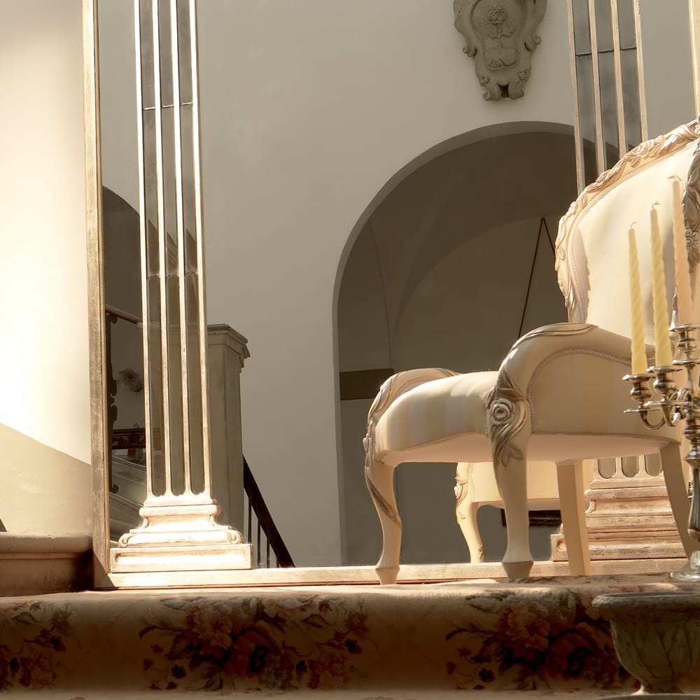 The Large Italian Antique Finish Gold Floor Mirror. This gorgeous mirror provides a luxurious focus and adds light and space to any area of your home. A statement piece ideal for hallway or luxurious bedroom setting. Height 231 cm x width 165 cm. Also available to order in various other finishes by request. Prices will vary.