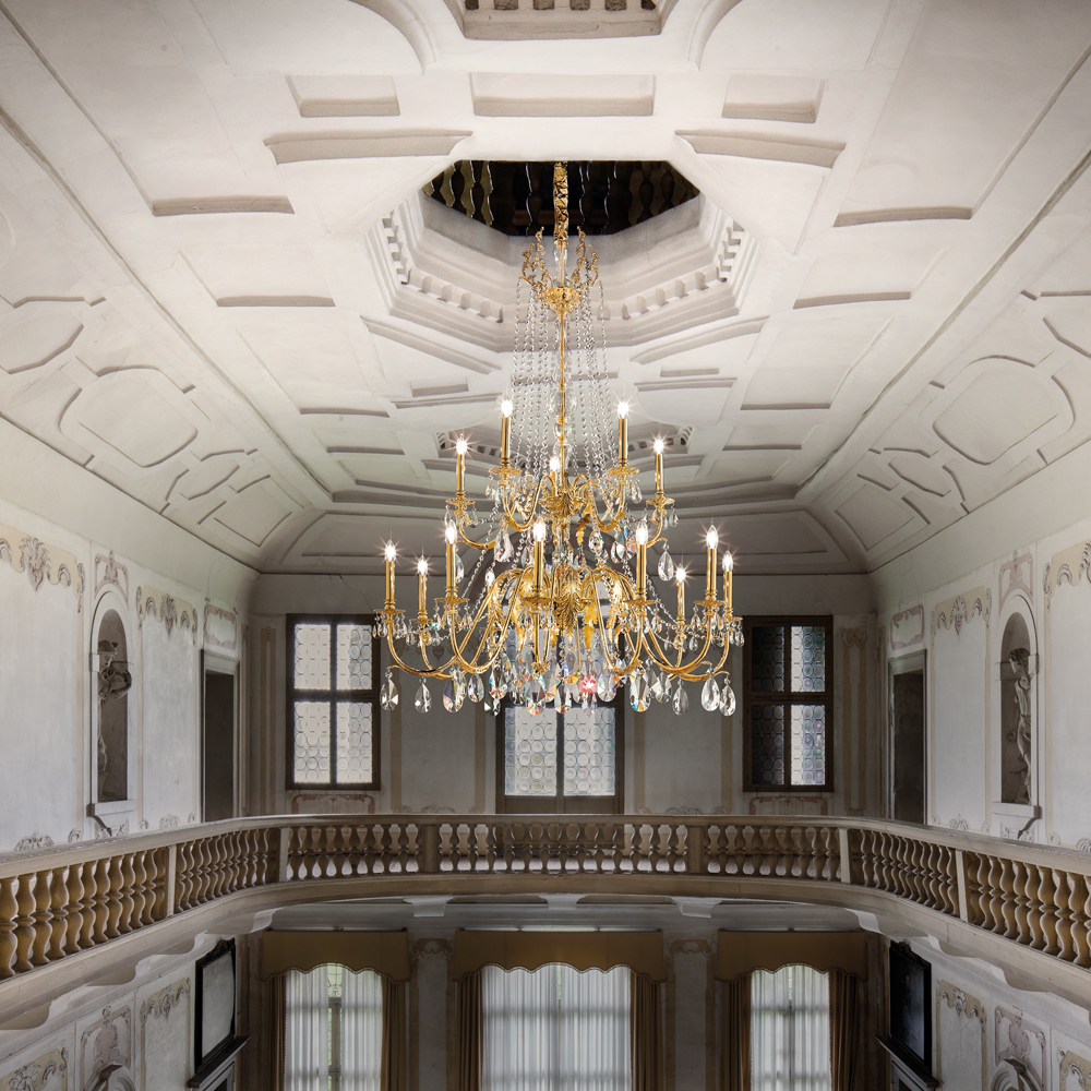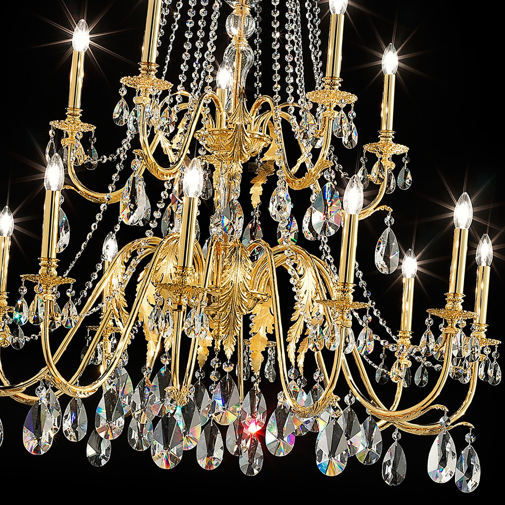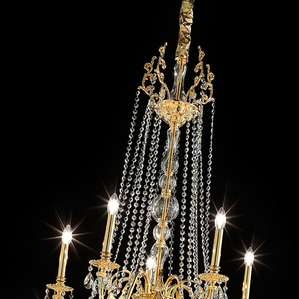 The Large Italian Gold Plated Crystal Chandelier, our sensational range of large crystal chandeliers offer an impressive focus for a variety of placements. Providing timeless sophistication and glamour. Designed for grand halls, ballrooms, theatres, restaurants, hotels lobby’s and large residences, anywhere in fact where an exceptional feature is required.